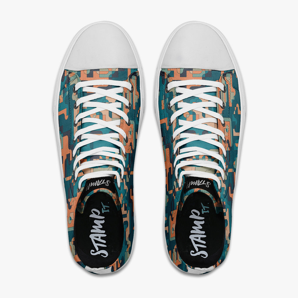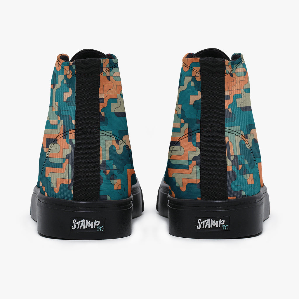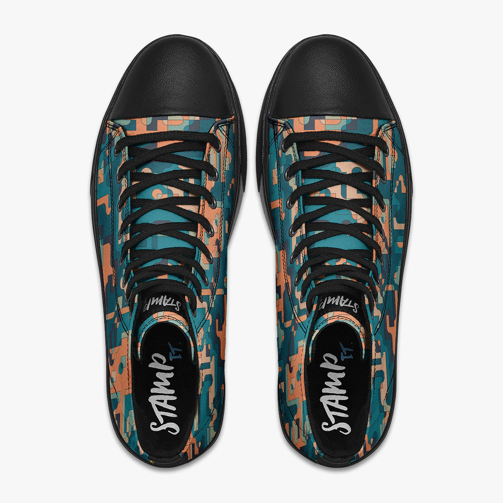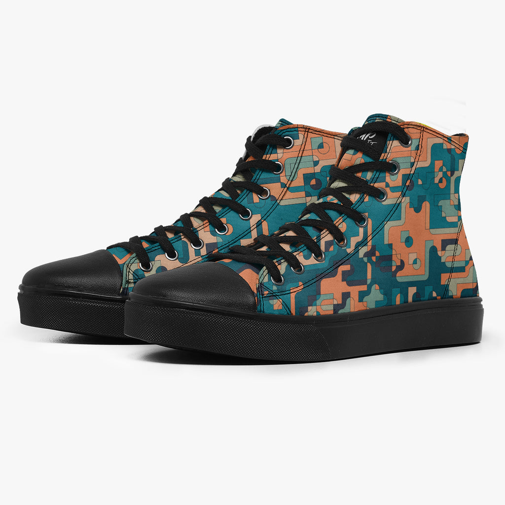 Tênis Cano Alto Azul Pattern Formas Geométricas Onduladas Abstrato, confeccionado em lona, com cores e estampas exclusivas.