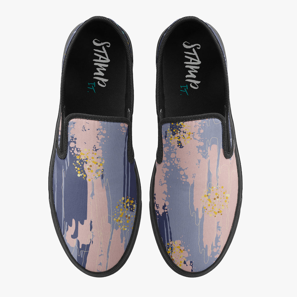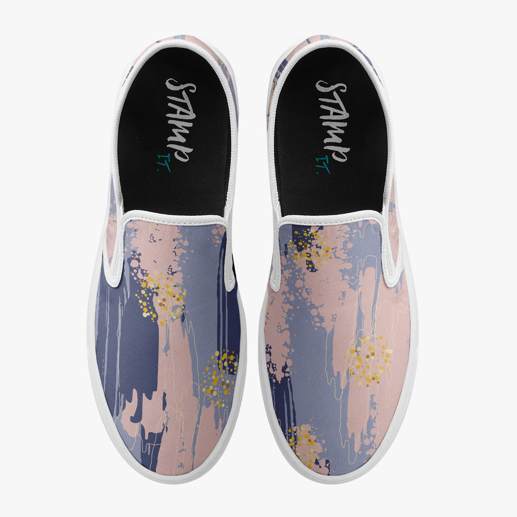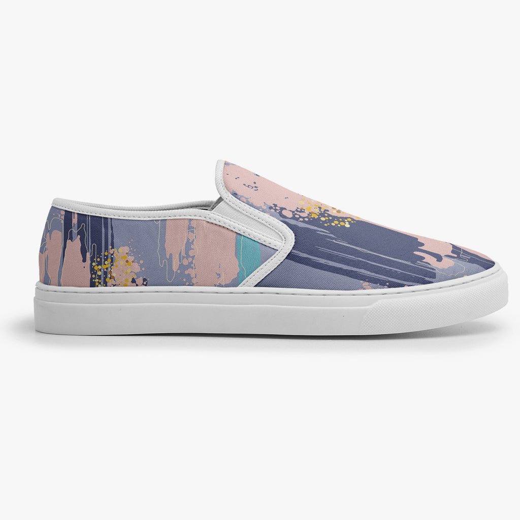 Calçado Slip On Colorido Tinta Aquarela Pattern Tumblr Colour Abstrato, confeccionado em lona, com cores e estampas exclusivas.