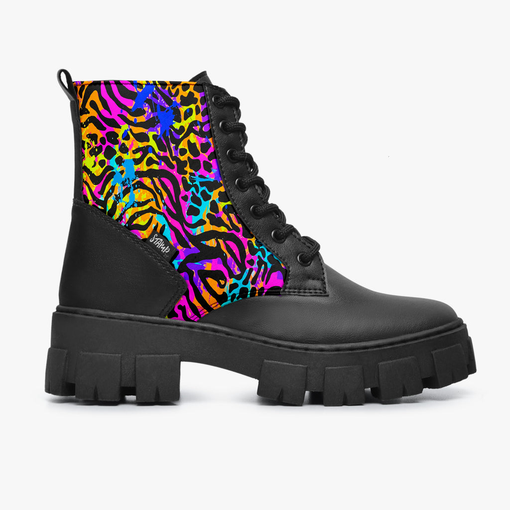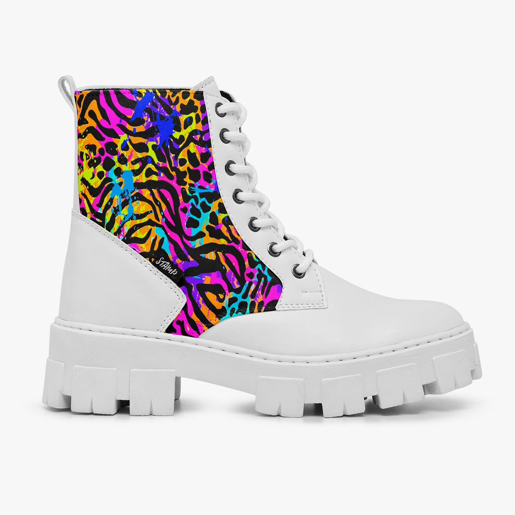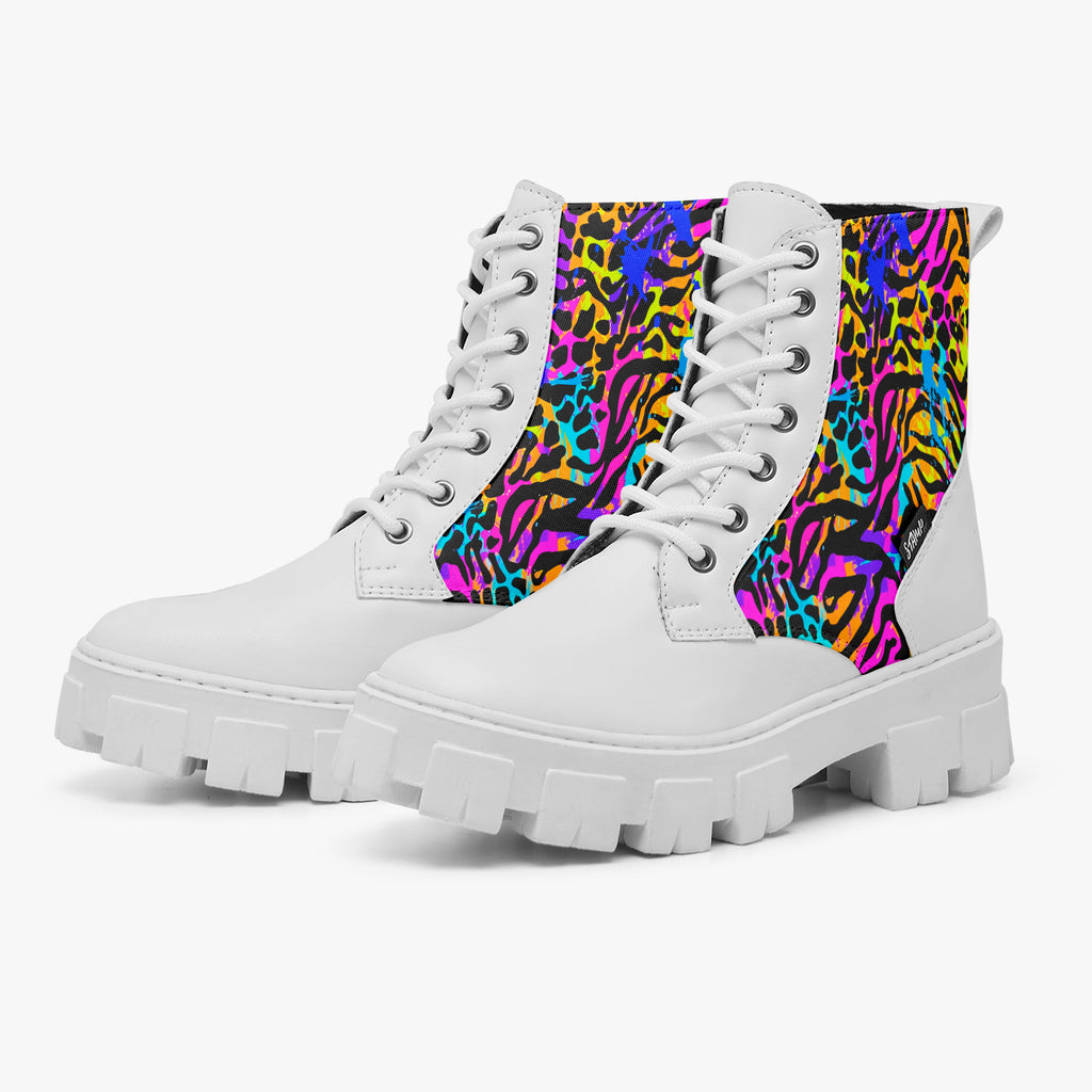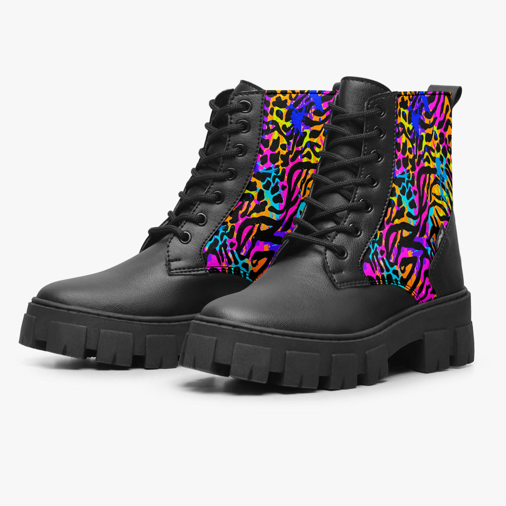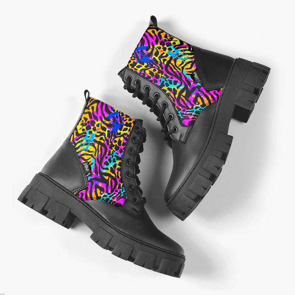 Bota Coturno Tratorada Cano Médio Animal Print Mix de Animais Colorido Animal Print