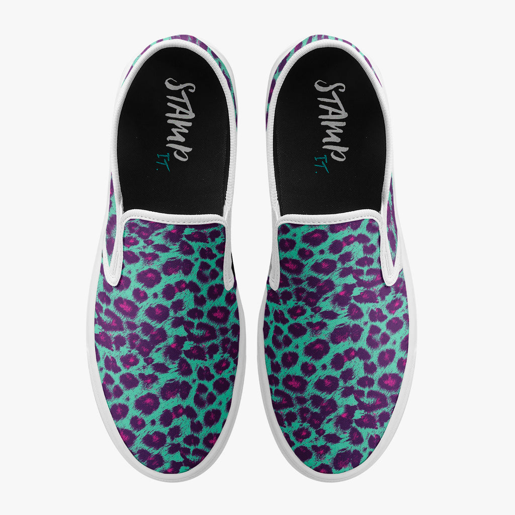 Tênis Sapatênis Mule Roxo Oncinha Animal Print Onça Neon