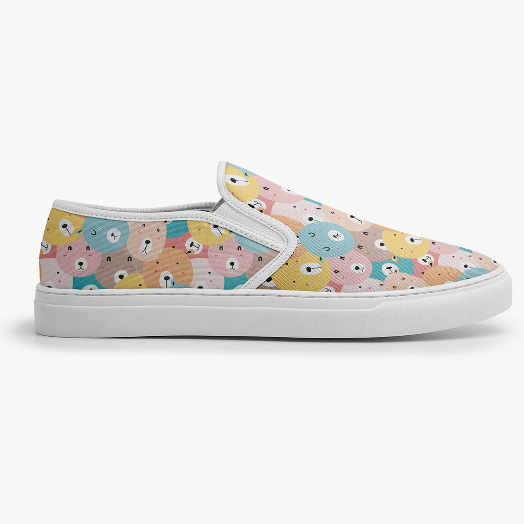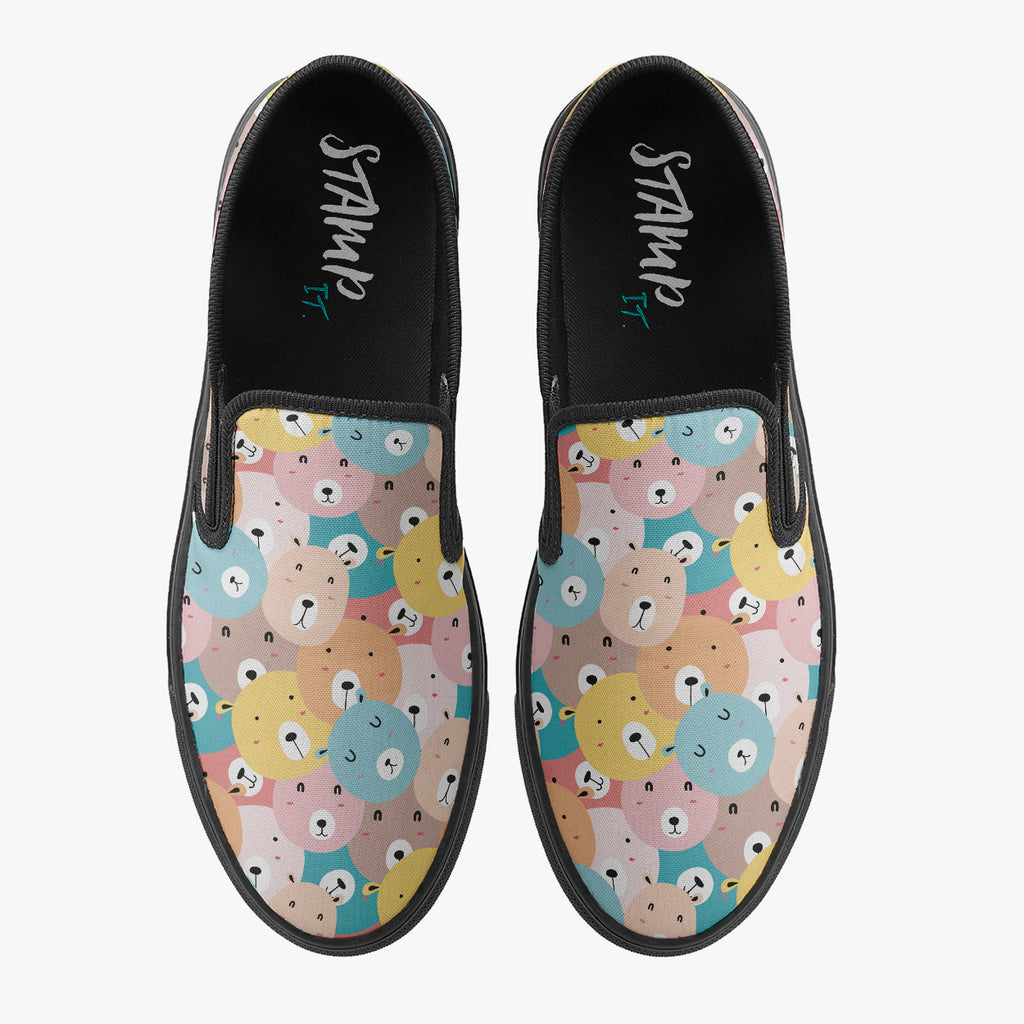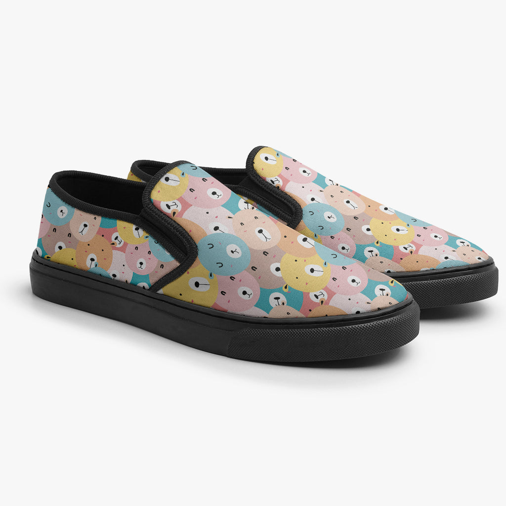 Calçado Slip On Colorido Pattern Ursinhos Fofos Tumblr Bear Animais, confeccionado em lona, com cores e estampas exclusivas.
