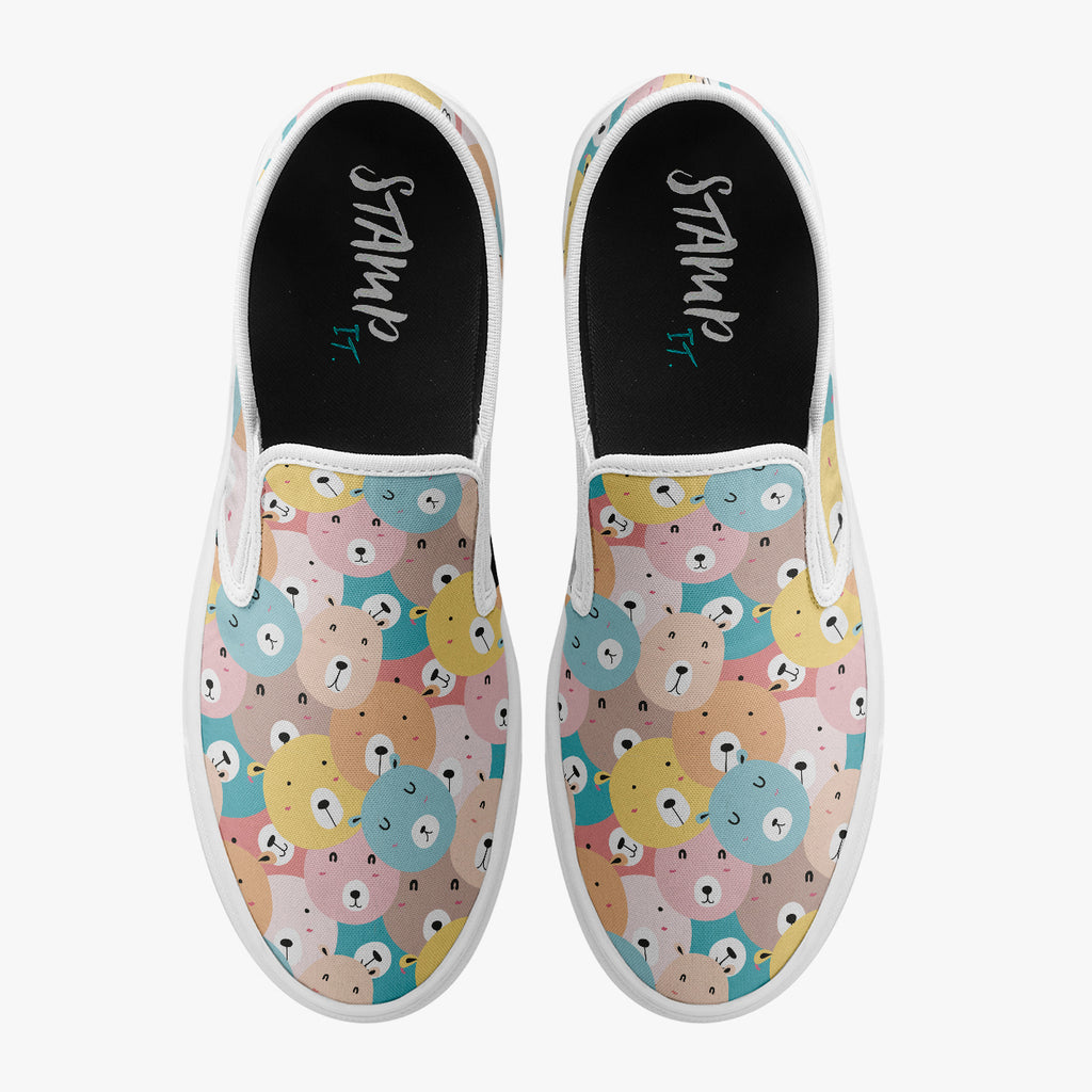 Tênis Slip On Colorido Pattern Ursinhos Fofos Tumblr Bear