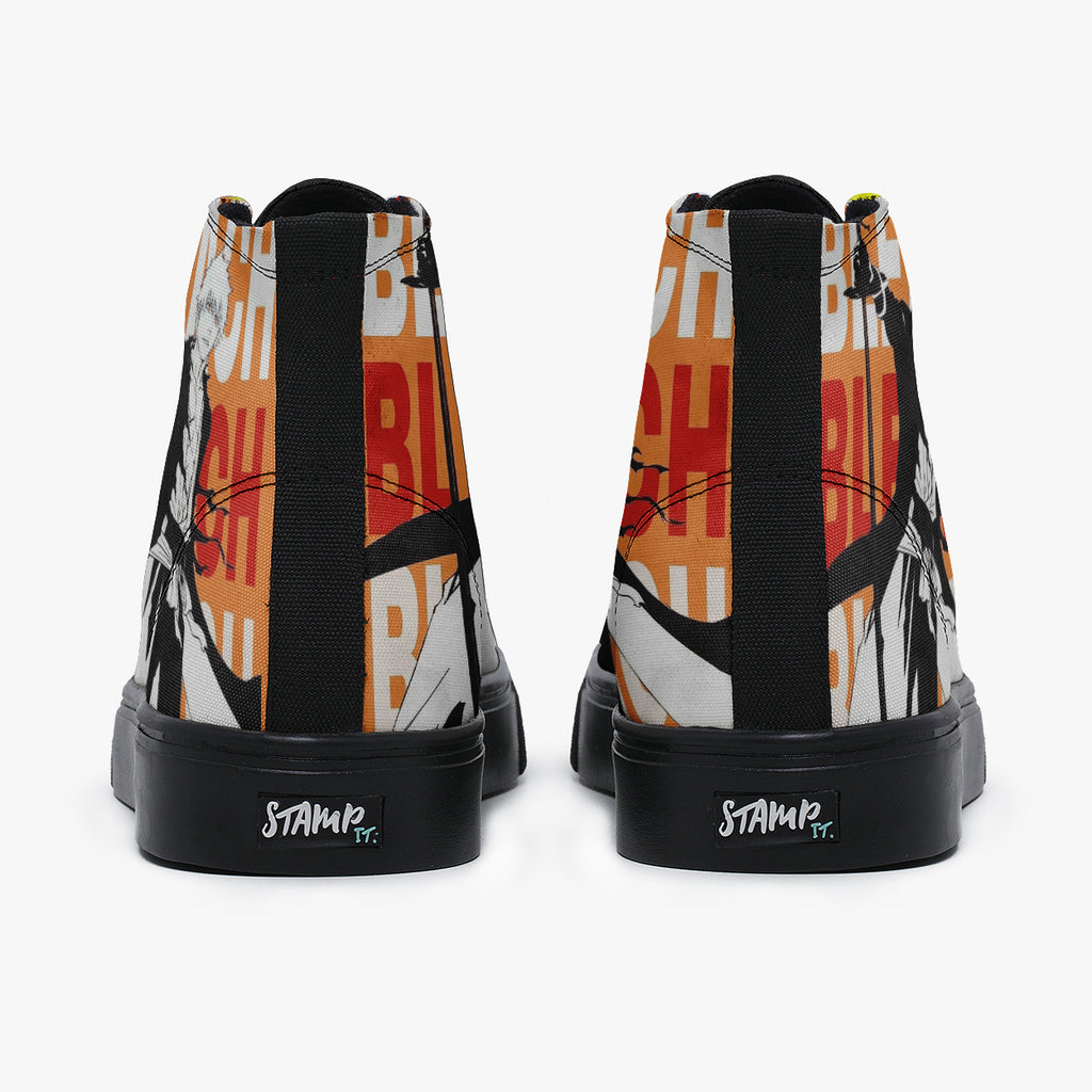 Tênis Cano Alto Laranja Bleach Ichigo Kurosaki Preto e Branco Anime