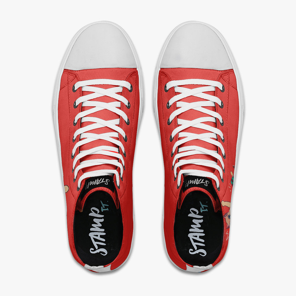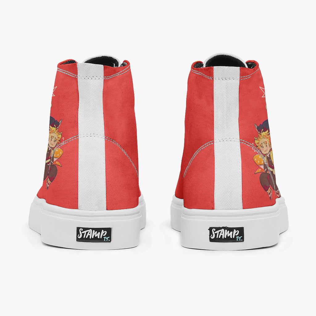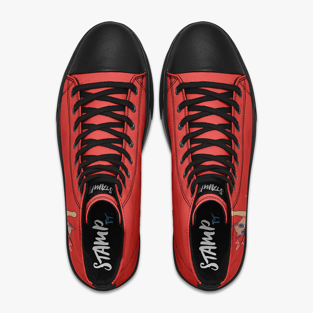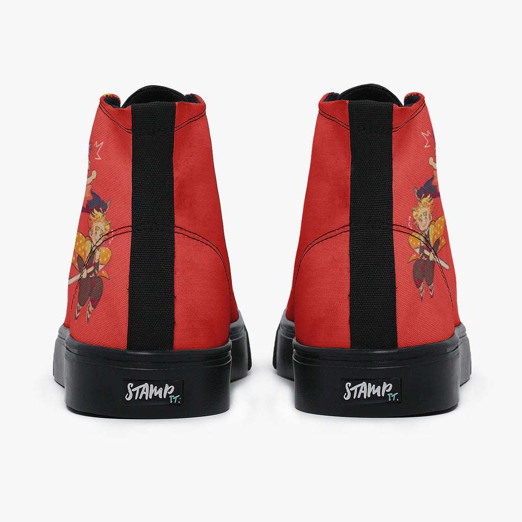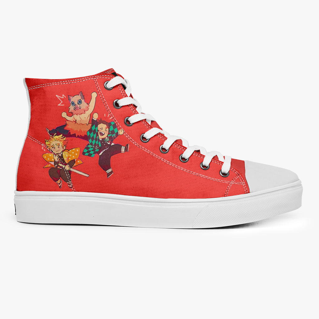 Tênis Cano Alto Vermelho Preto Kimetsu No Yaiba Demon Slayer Comemorando Vitoria Anime, confeccionado em lona, com cores e estampas exclusivas.