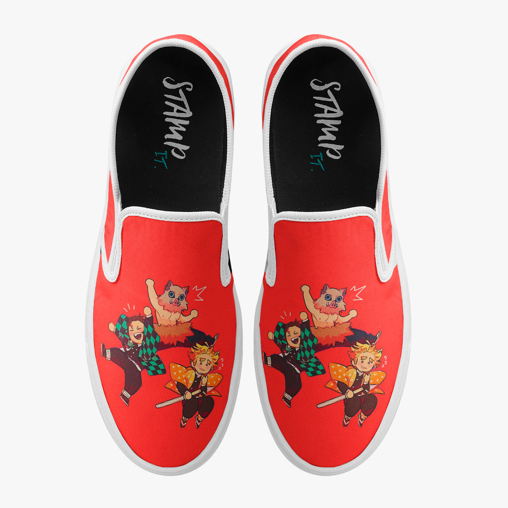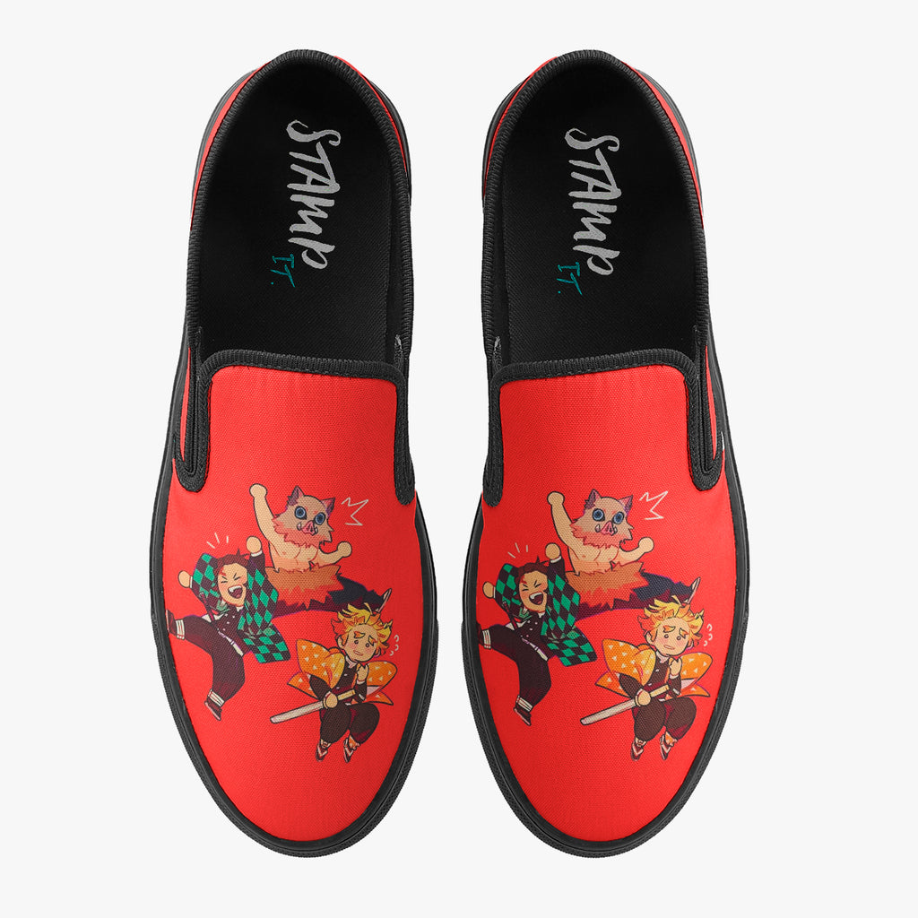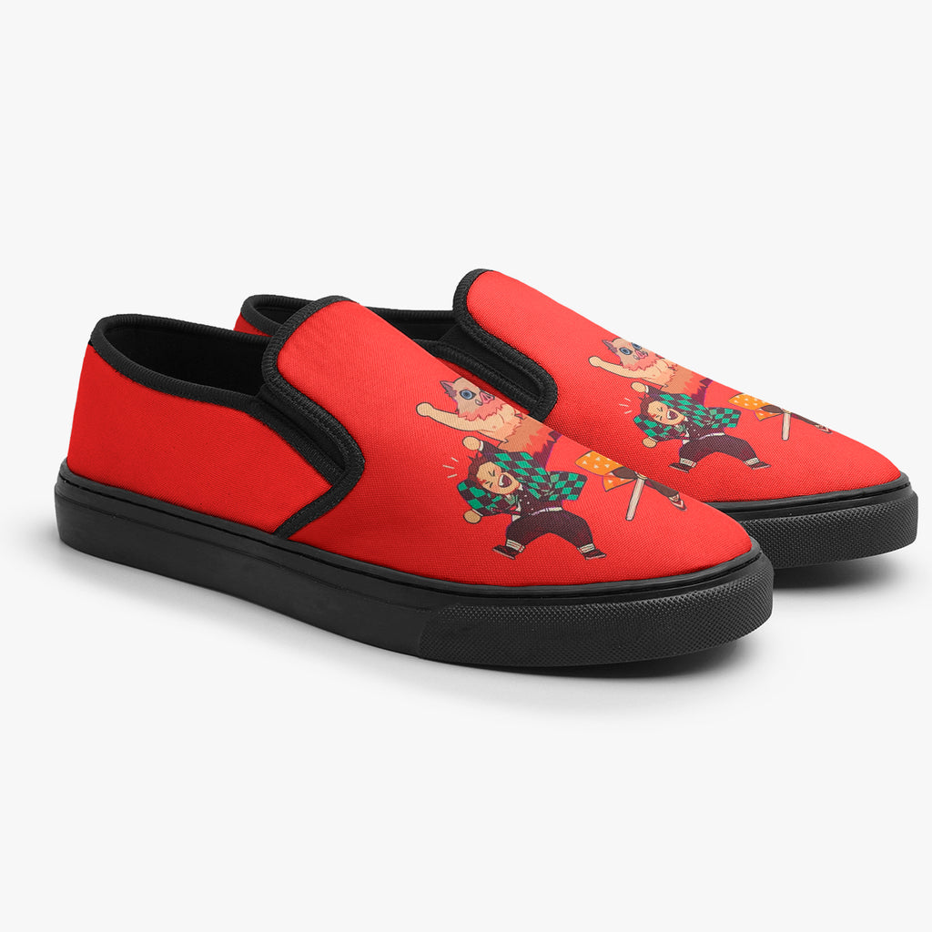 Tênis Slip On Vermelho Kimetsu No Yaiba Demon Slayer Comemorando Vitoria Anime