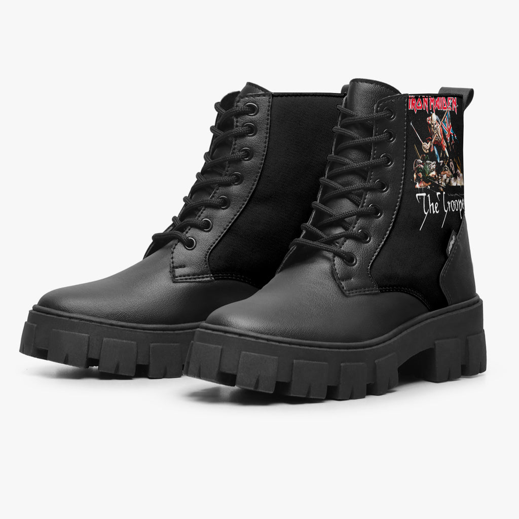 Bota Coturno Tratorada Cano Médio Preto Iron Maiden The Trooper Bandas de Rock, confeccionado em lona e couro sintético com cores e estampas exclusivas.
