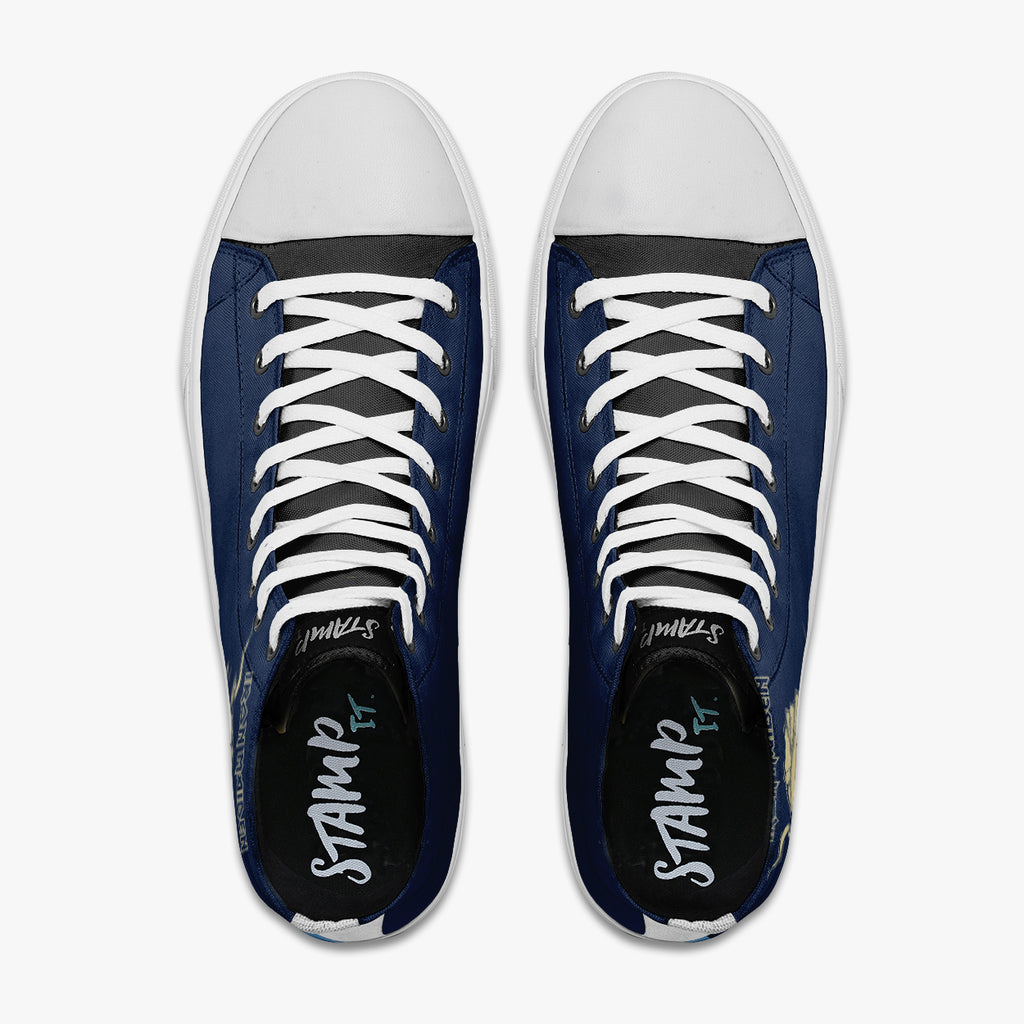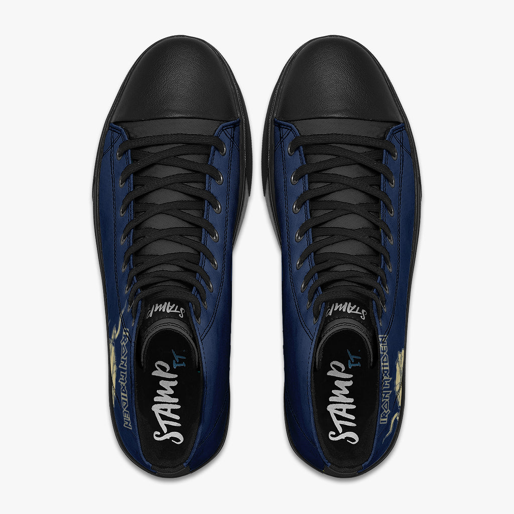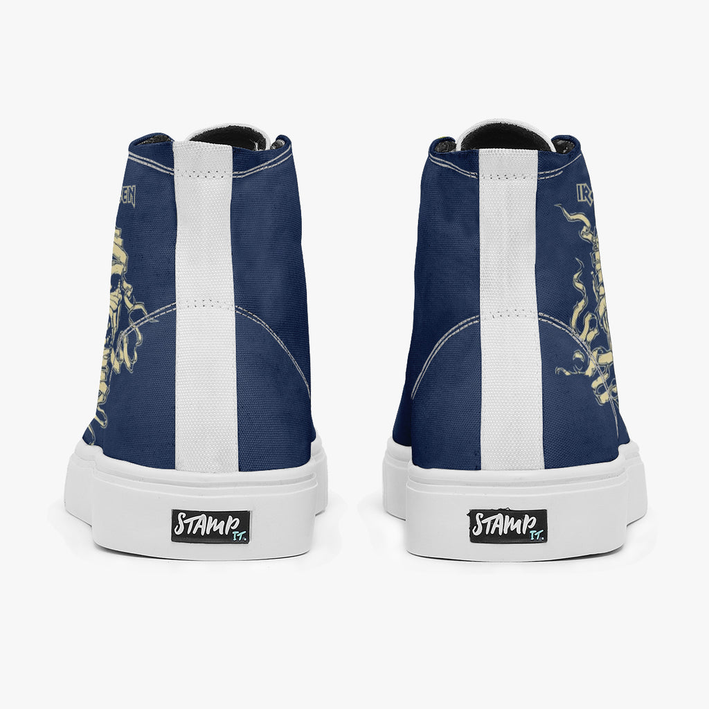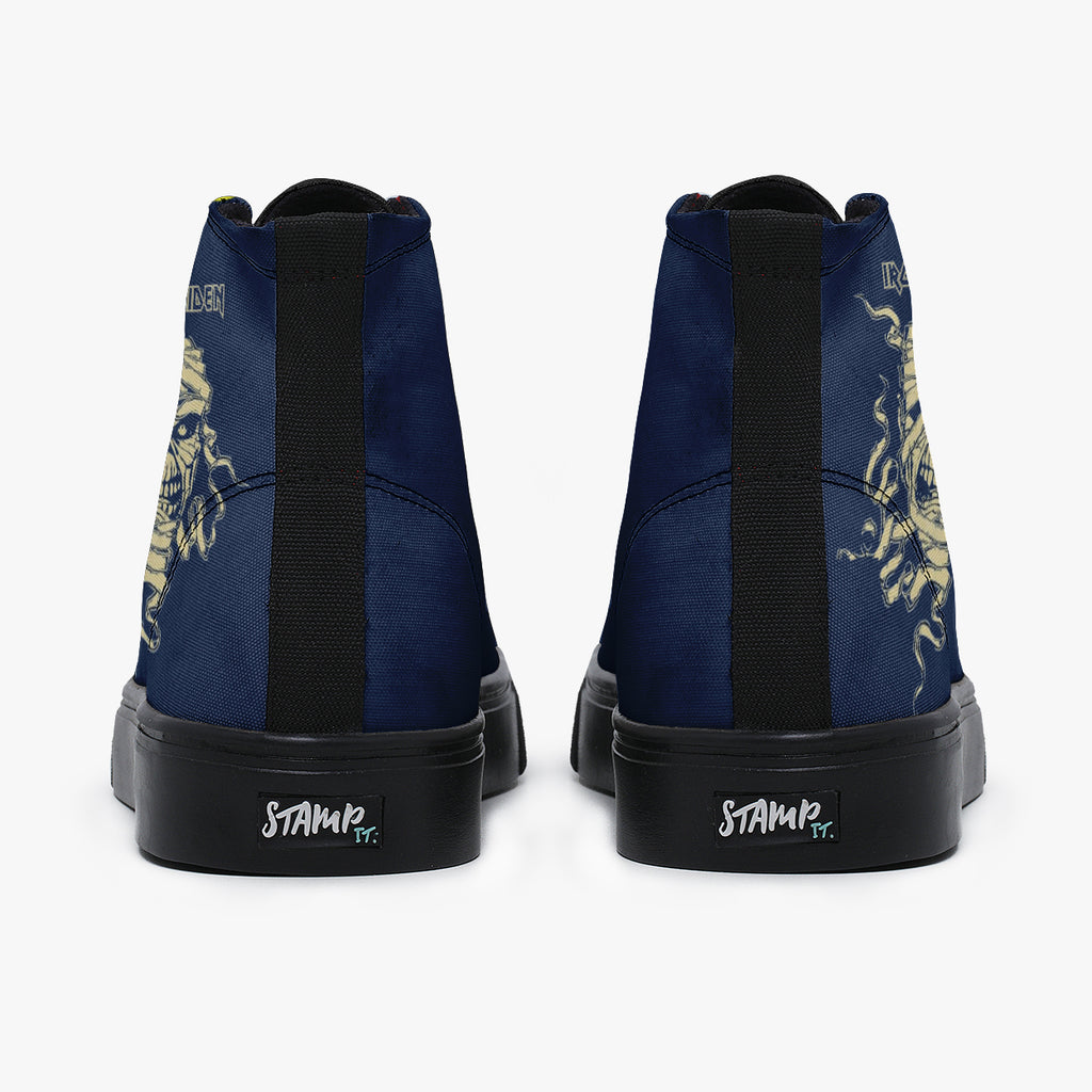 Tênis Cano Alto Azul Eddie Heavy Metal Iron Maiden Múmia Powerslave Bandas de Rock, confeccionado em lona, com cores e estampas exclusivas.