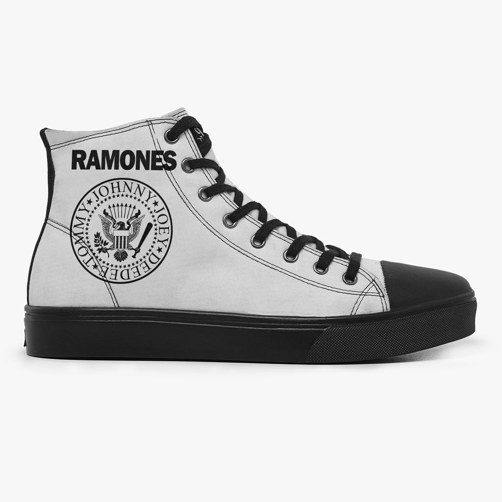Tênis Cano Alto Branco Ramones Logo Bandas de Rock