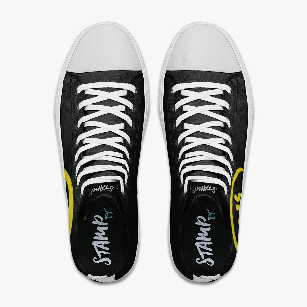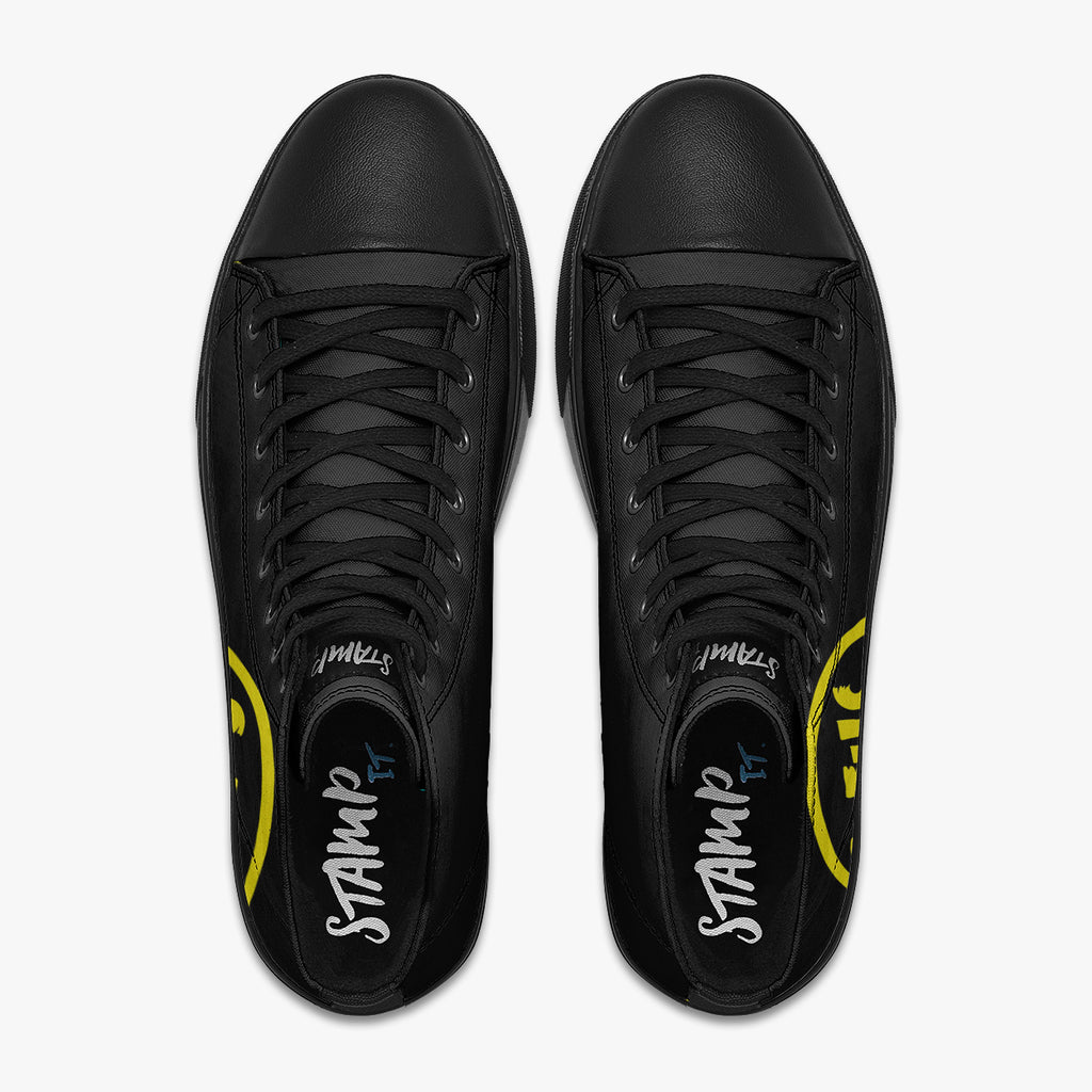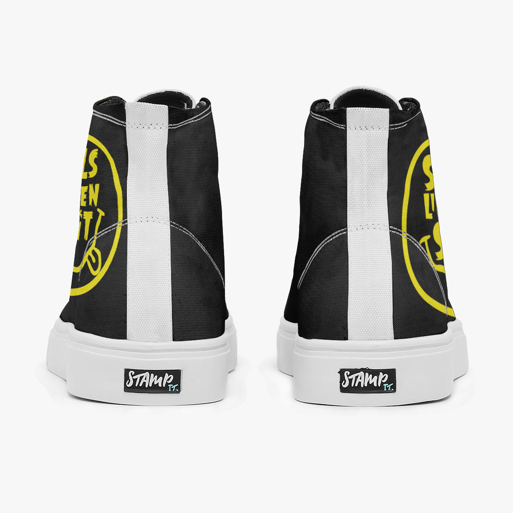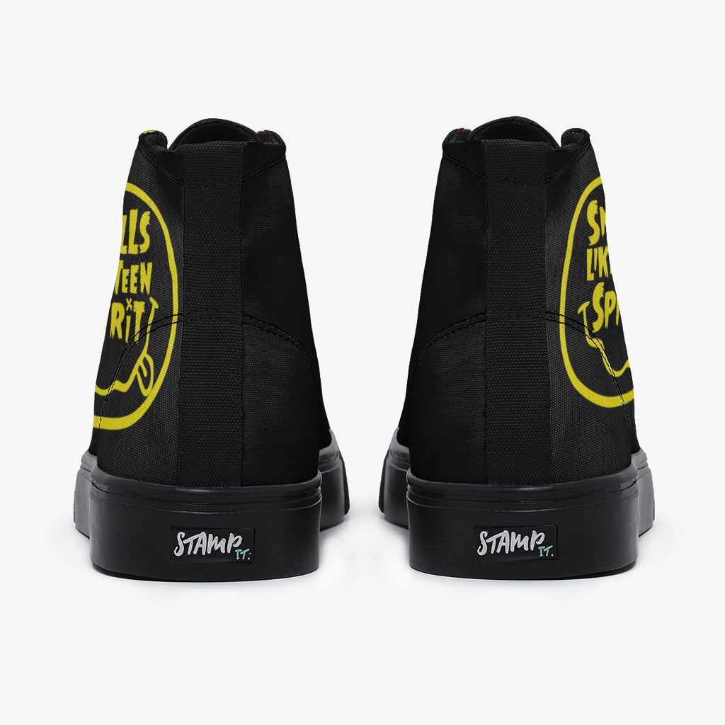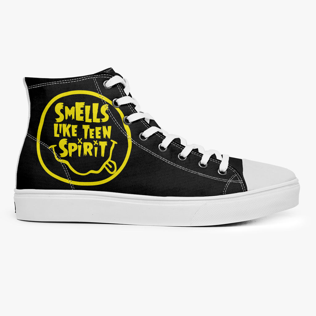 Tênis Cano Alto Preto Nirvana Grunge Smells Like Teen Spirit Bandas de Rock, confeccionado em lona, com cores e estampas exclusivas.