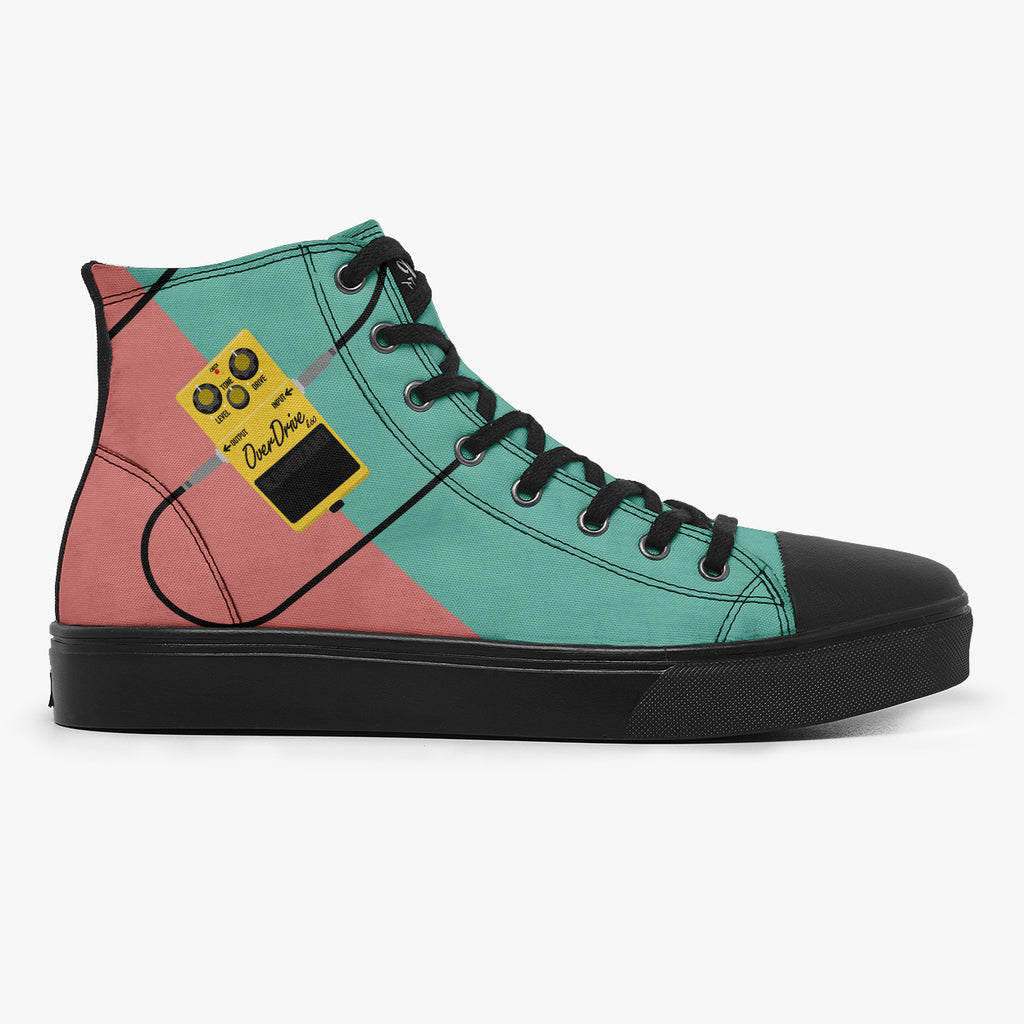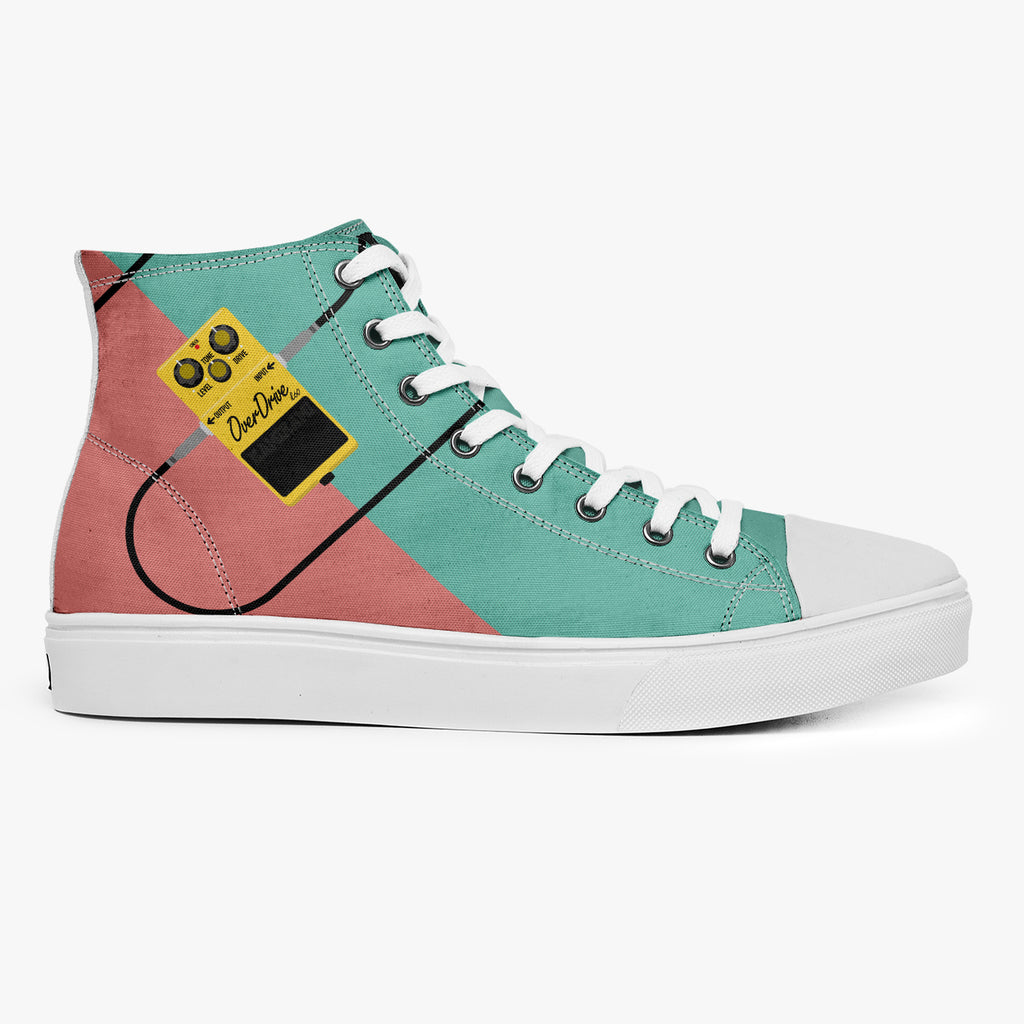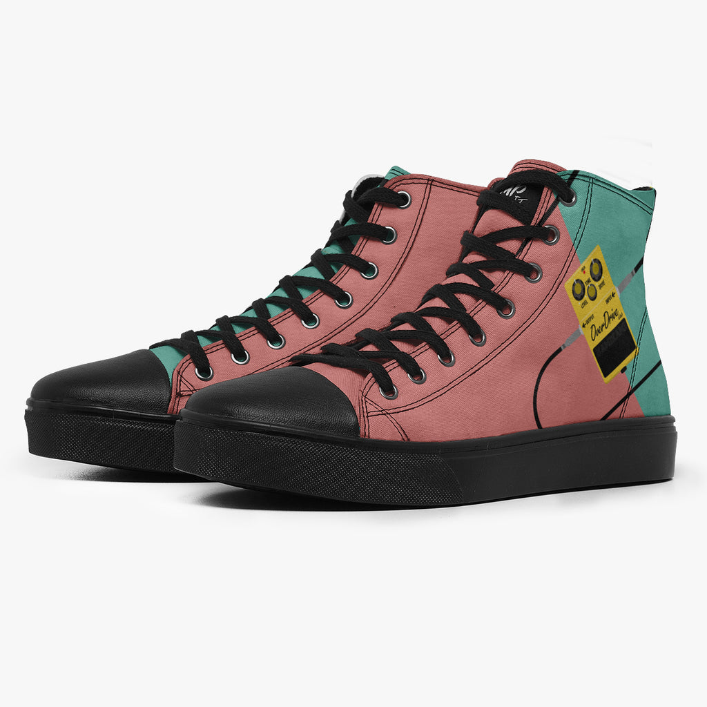Tênis Cano Alto Verde Rosa Rock and Roll Pedal Overdrive Bandas de Rock