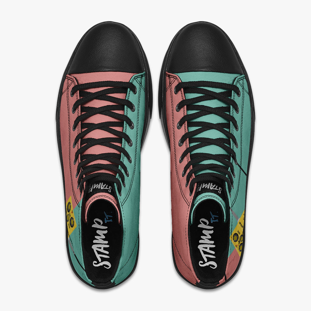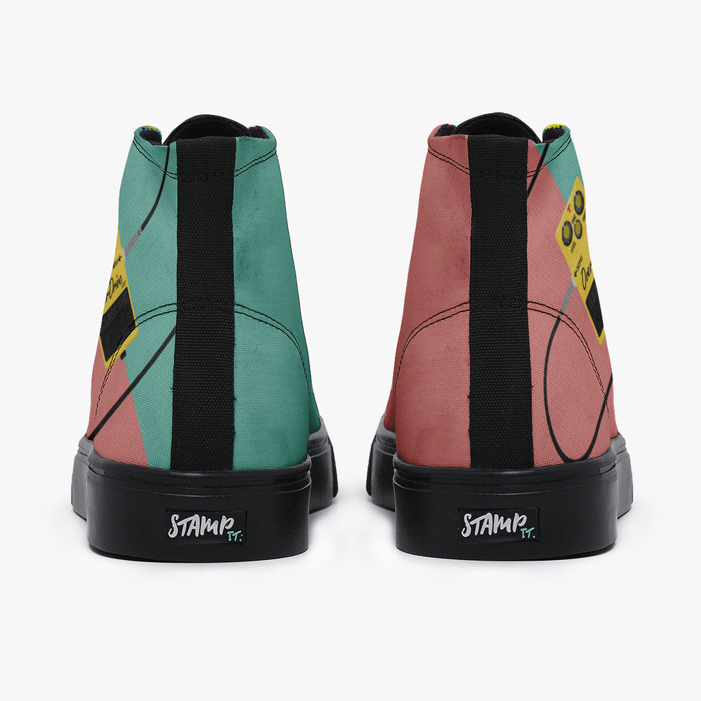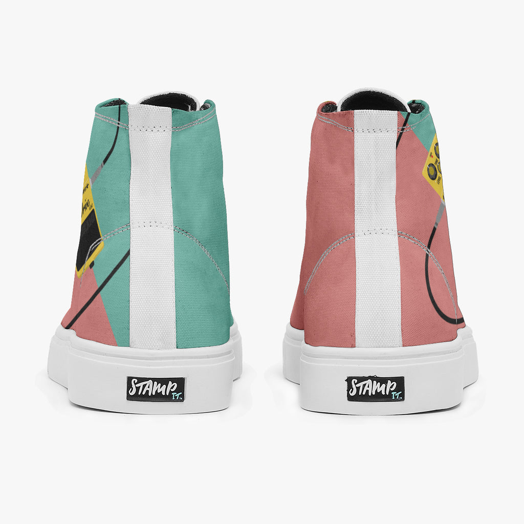 Tênis Cano Alto Verde Rosa Rock and Roll Pedal Overdrive Bandas de Rock