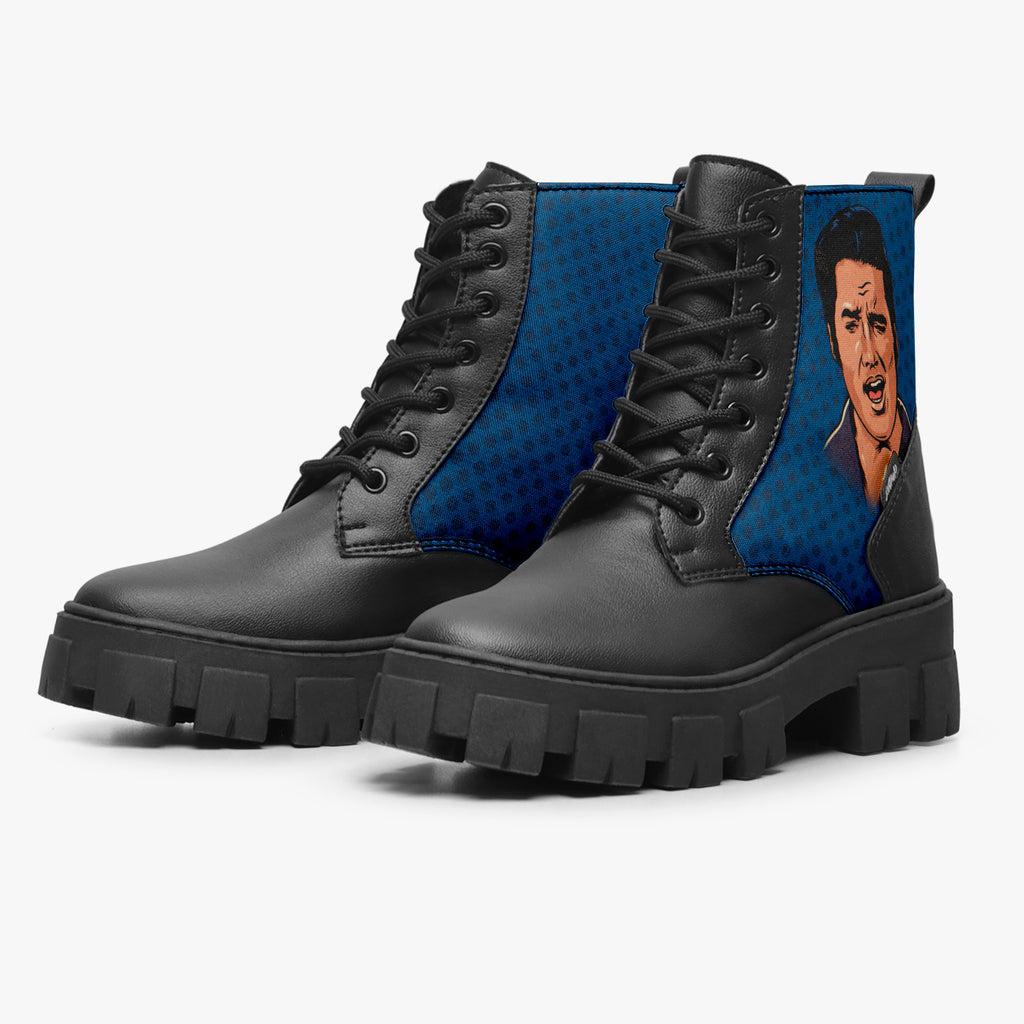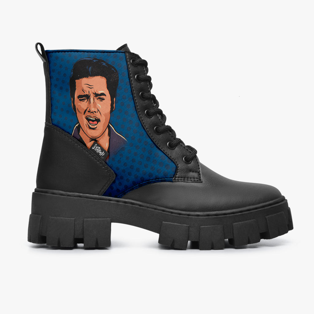 Bota Coturno Tratorada Cano Médio Azul Elvis Presley Rock And Roll