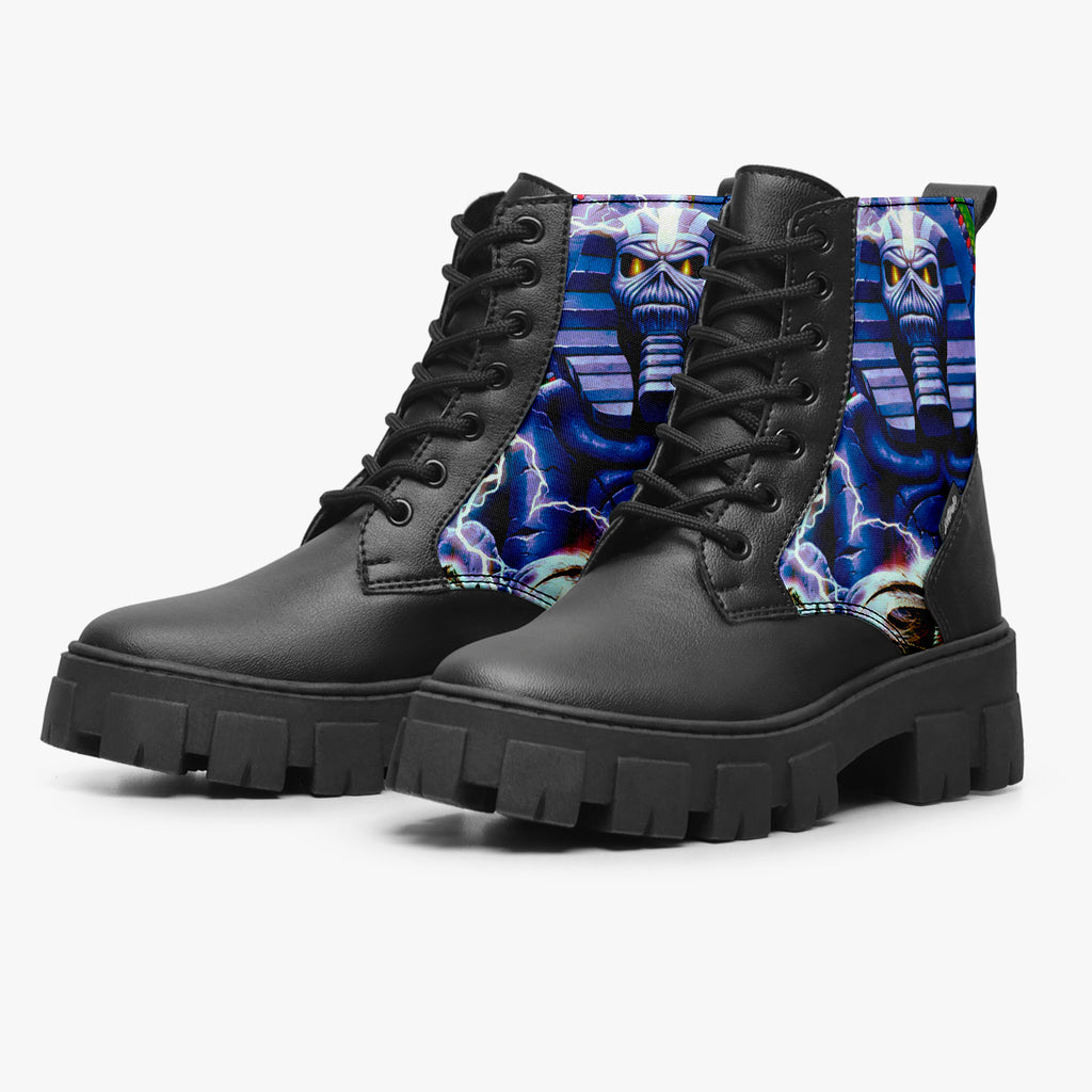Bota Coturno Tratorada Cano Médio Azul Iron Maiden PowerSlave, confeccionado em lona e couro sintético com cores e estampas exclusivas.