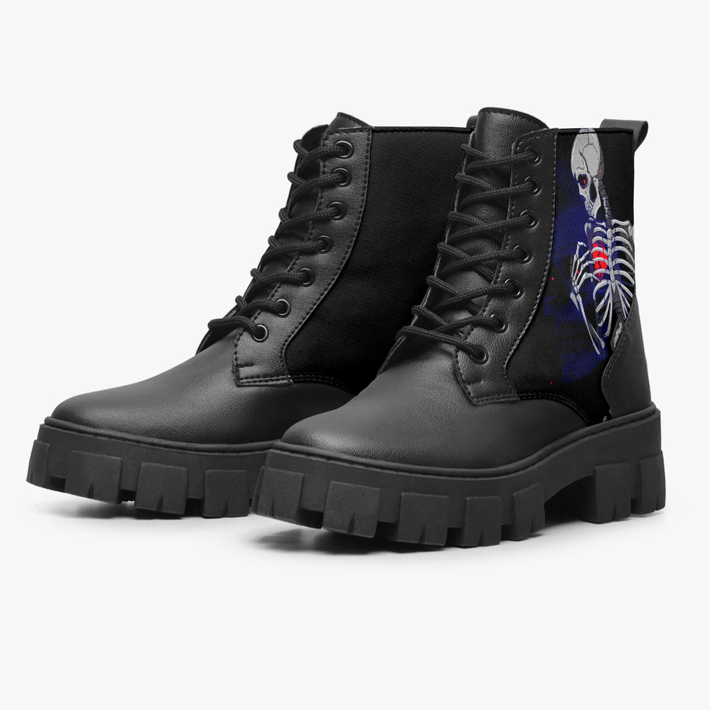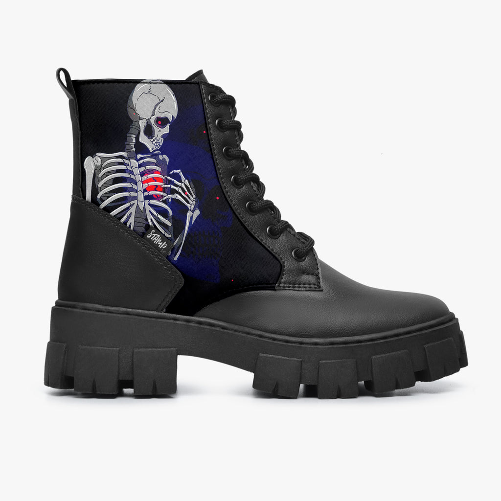 Bota Coturno Tratorada Cano Médio Broken Heart Dark Skull Preto Caveiras