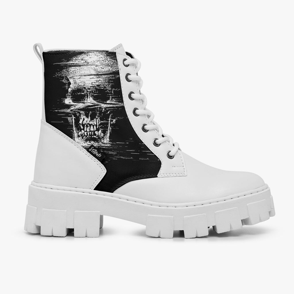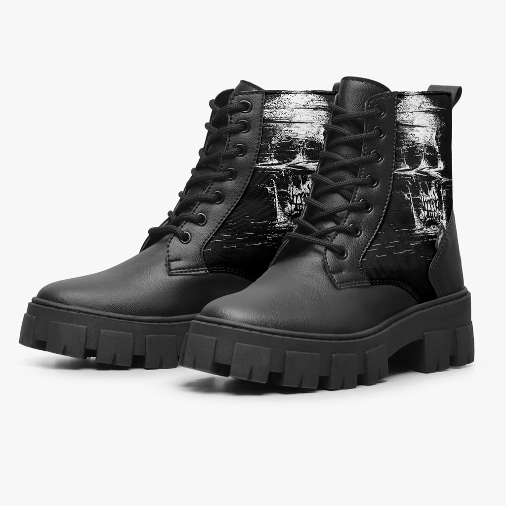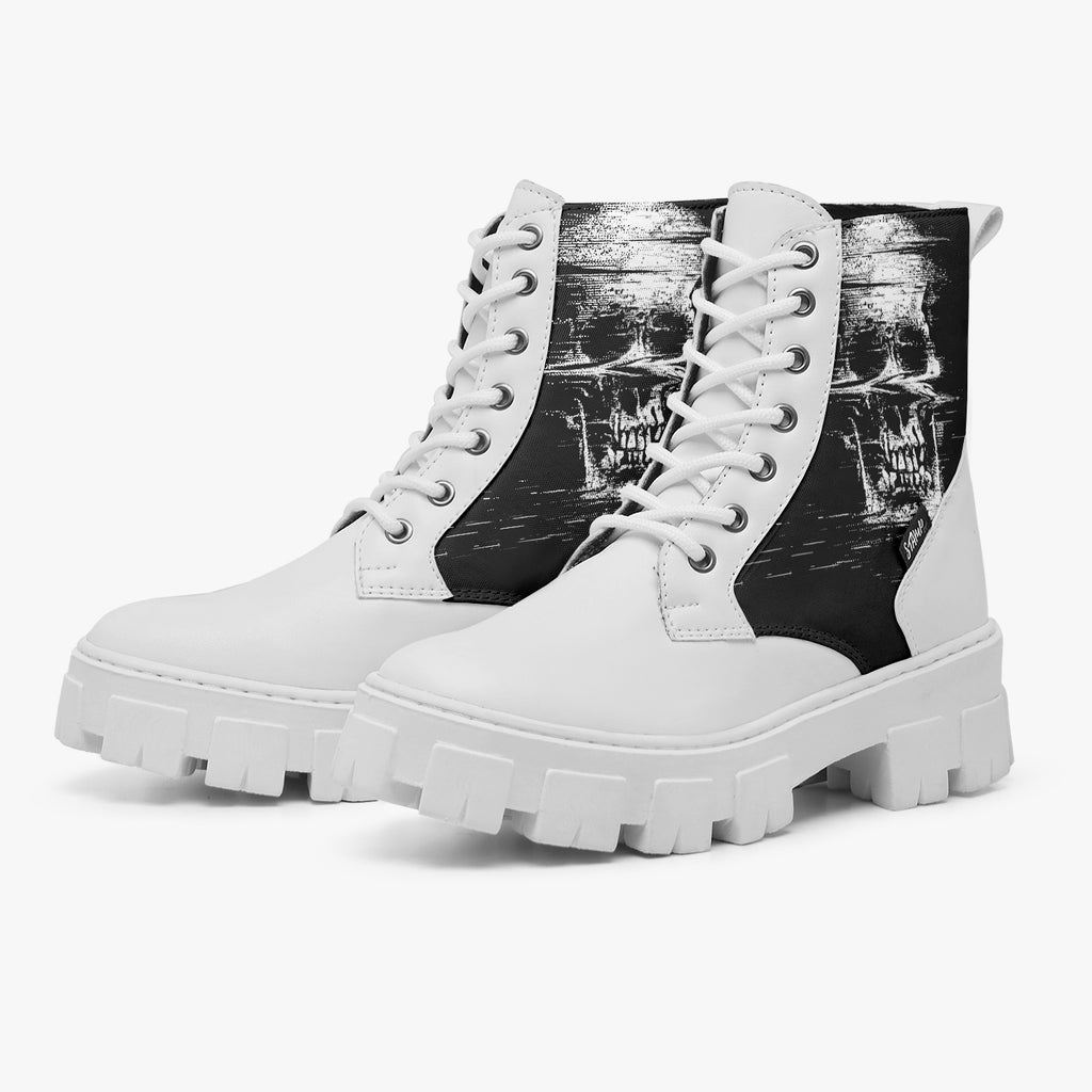 Bota Coturno Tratorada Cano Médio Caveira Psicodélica No Sigal Preto Caveiras