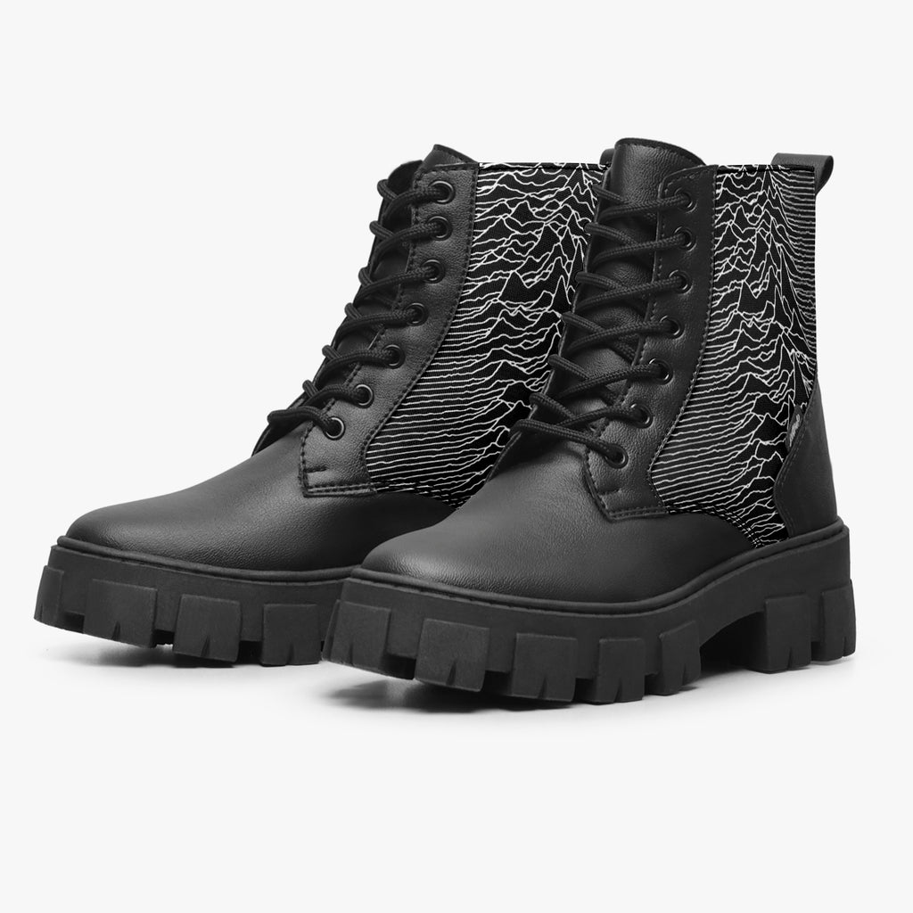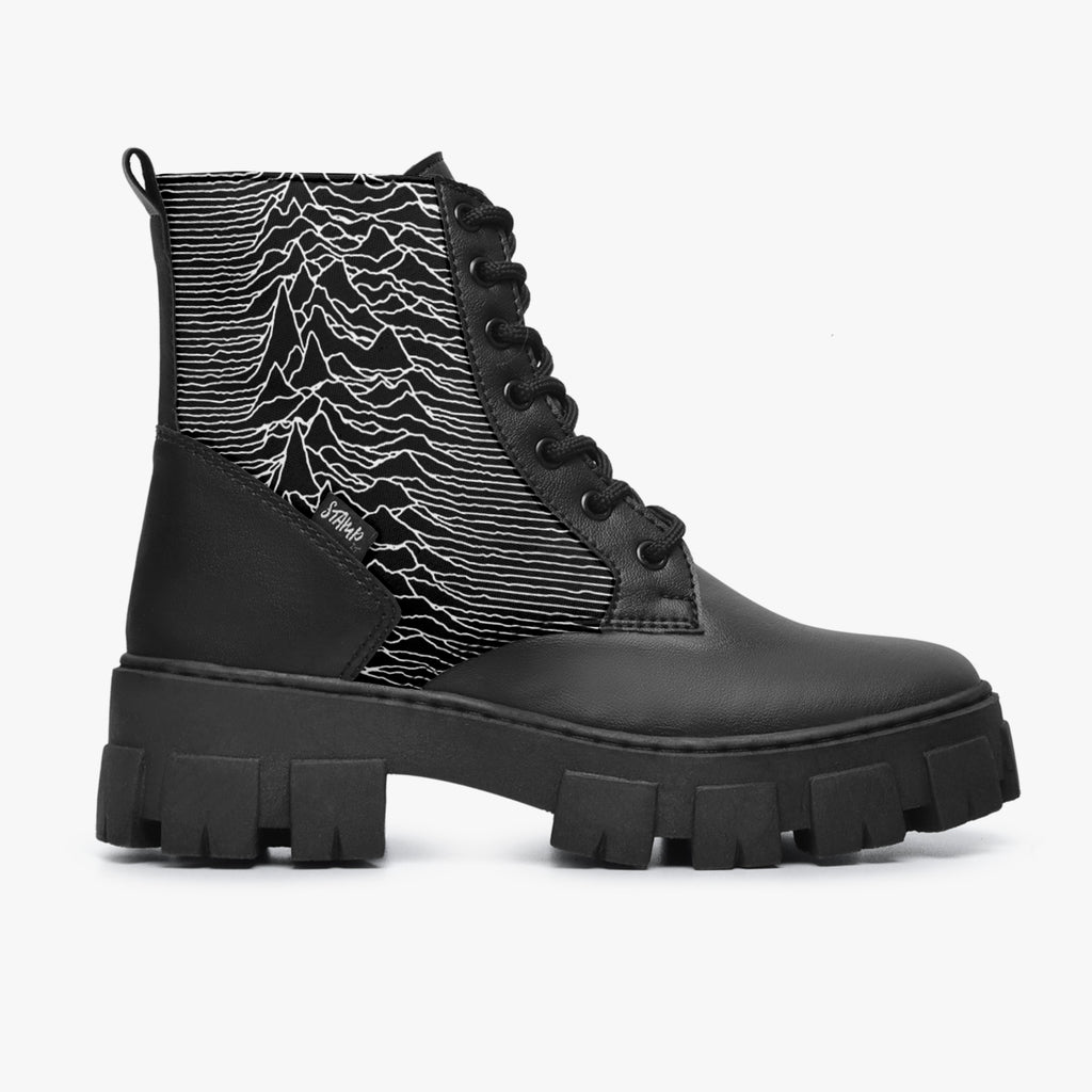 Bota Coturno Tratorada Cano Médio Joy Division Unknown Pleasures, confeccionado em lona e couro sintético com cores e estampas exclusivas.