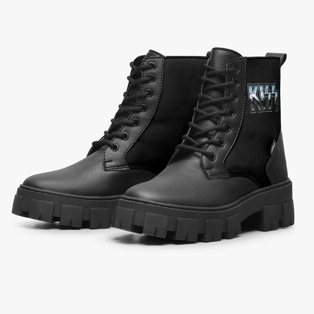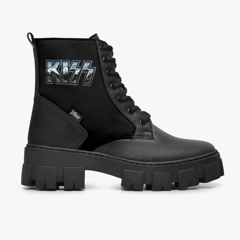 Bota Coturno Tratorada Cano Médio Kiss Chrome, confeccionado em lona e couro sintético com cores e estampas exclusivas.