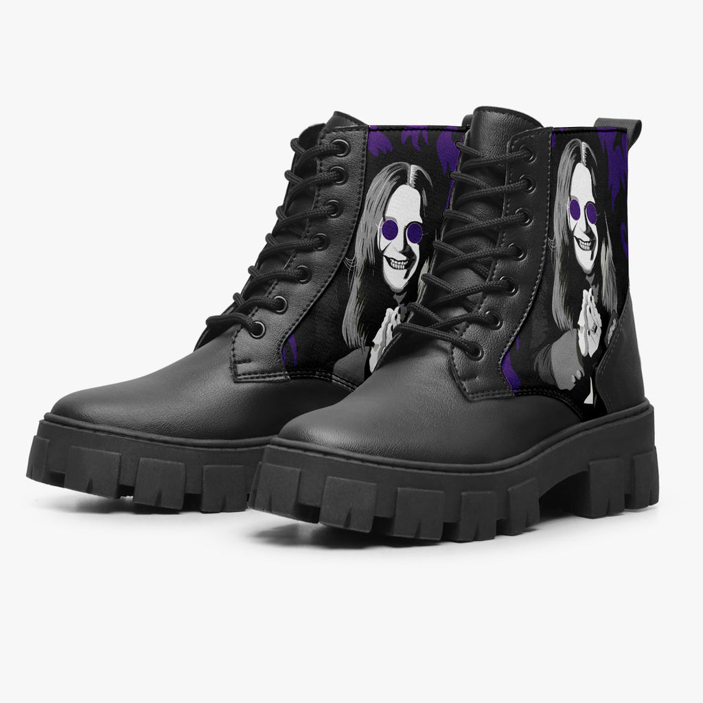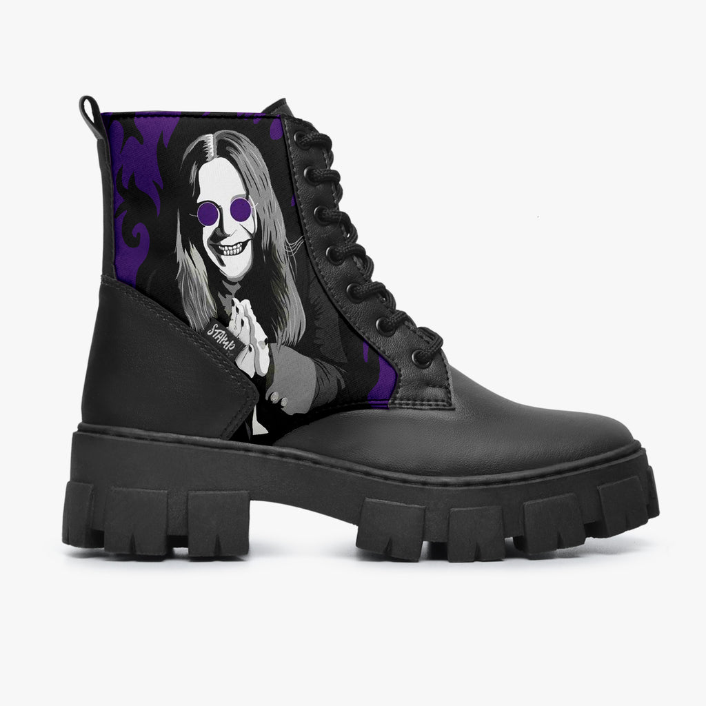 Bota Coturno Tratorada Cano Médio Ozzy Osbourne On Fire Roxo Bandas de Rock, confeccionado em lona e couro sintético com cores e estampas exclusivas.
