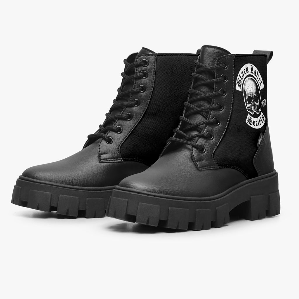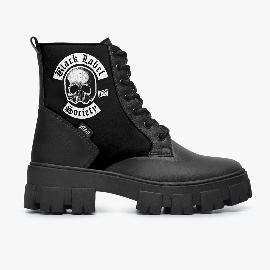 Bota Coturno Tratorada Cano Médio Preto Black Label Society Bandas De Rock, confeccionado em lona e couro sintético com cores e estampas exclusivas.