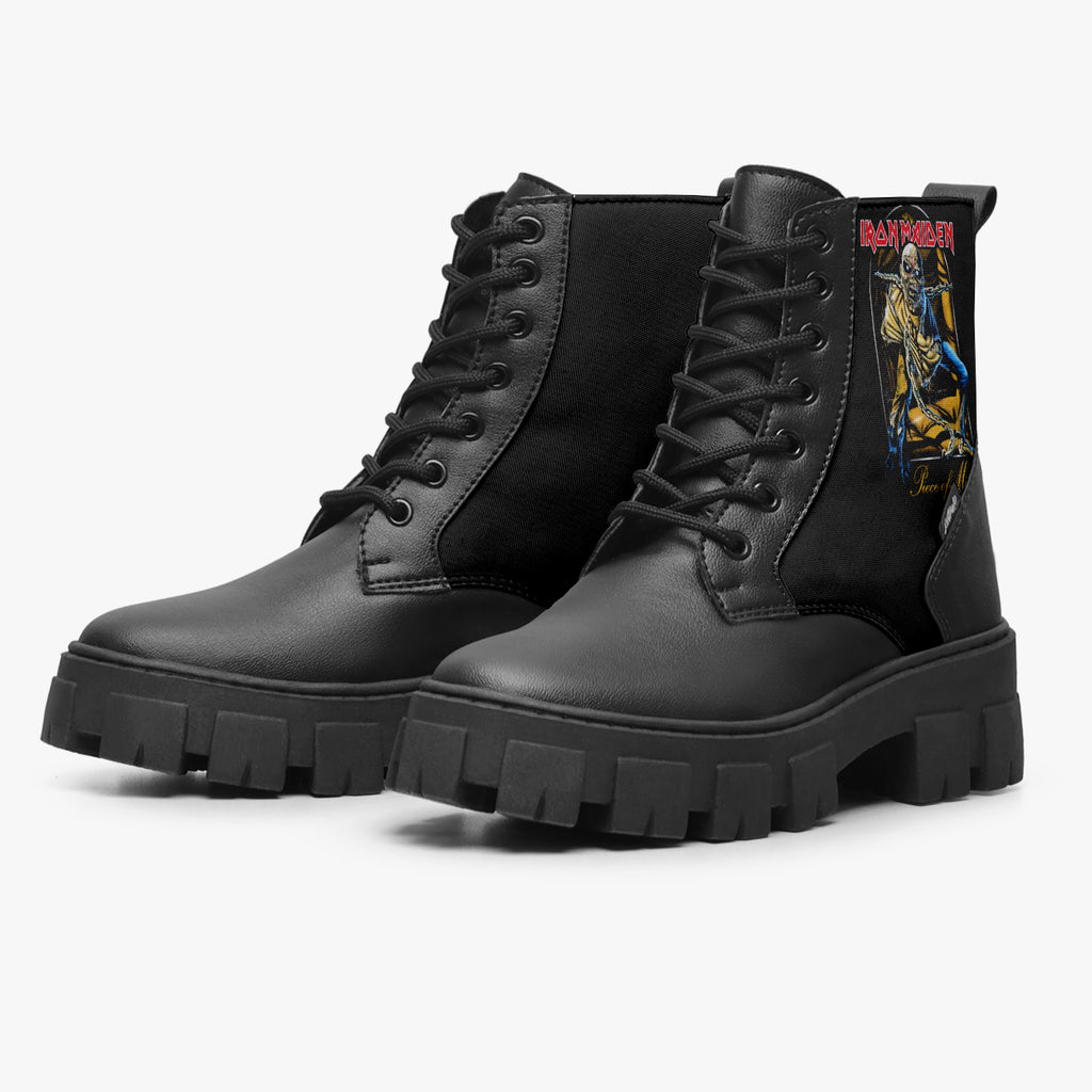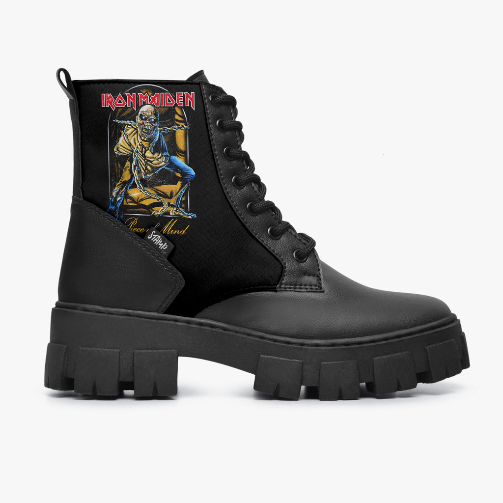 Bota Coturno Tratorada Cano Médio Preto Iron Maiden Piece Of Mind Bandas de Rock, confeccionado em lona e couro sintético com cores e estampas exclusivas.