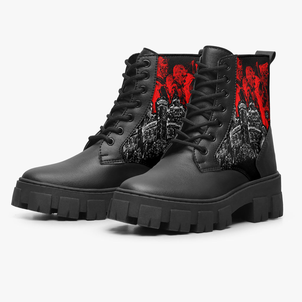Bota Coturno Tratorada Cano Médio Rammstein Heavy Metal Till Lindemann Preto Bandas de Rock, confeccionado em lona e couro sintético com cores e estampas exclusivas.