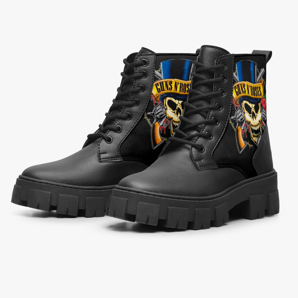 Bota Coturno Tratorada Cano Médio Rock N Roll 90s Guns N Roses Preto Bandas de Rock, confeccionado em lona e couro sintético com cores e estampas exclusivas.