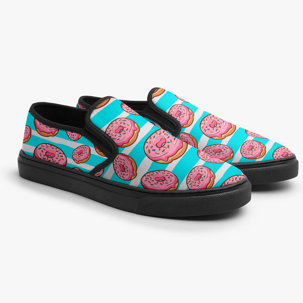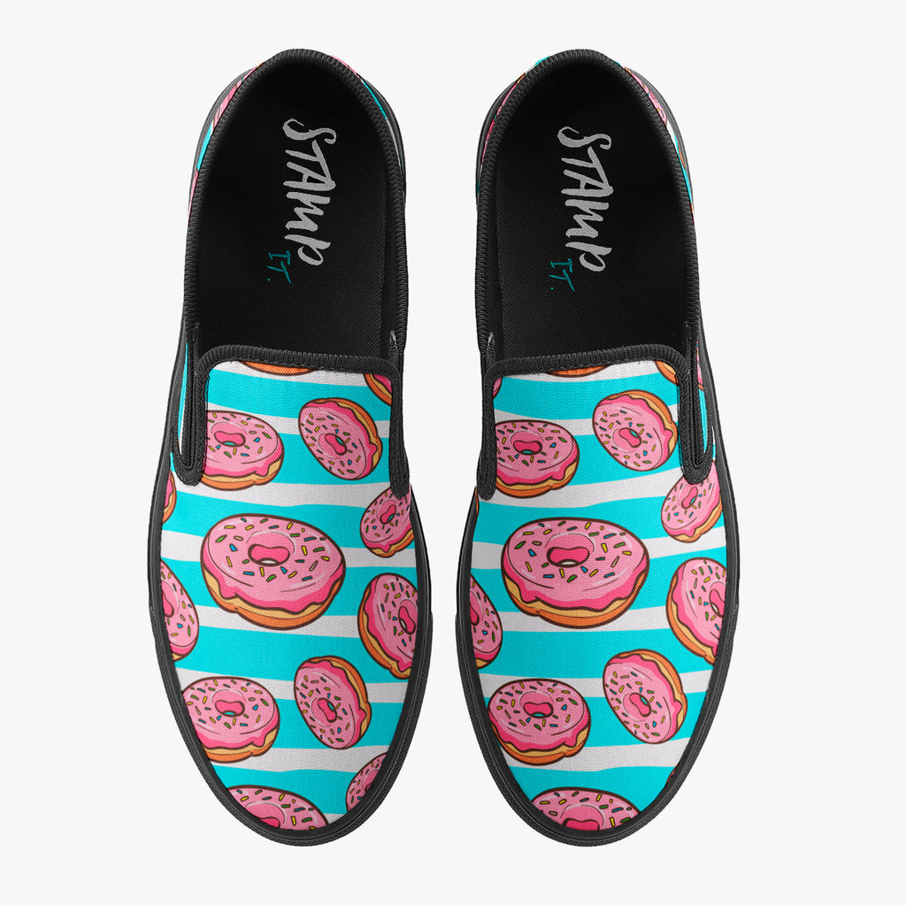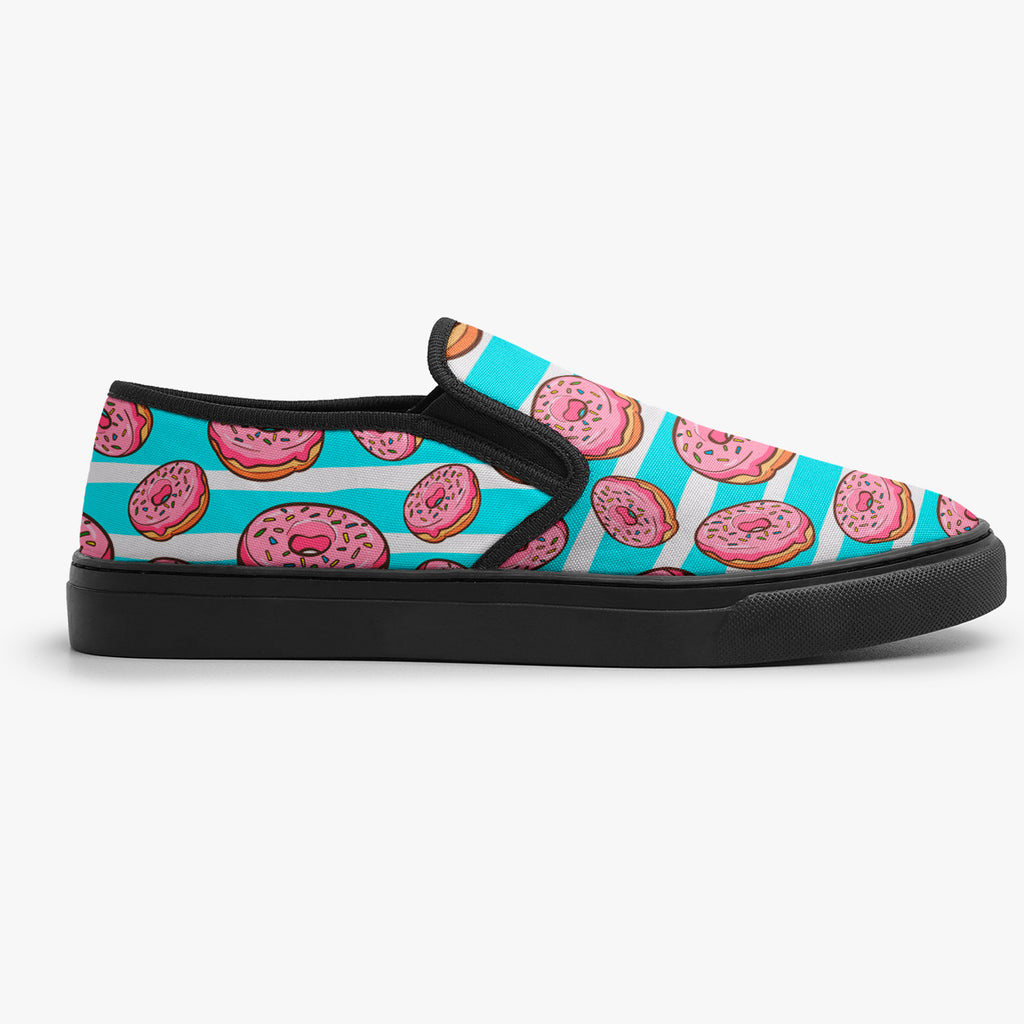 Tênis Slip On Listras Azul Branco Donuts Rosa Abstrato