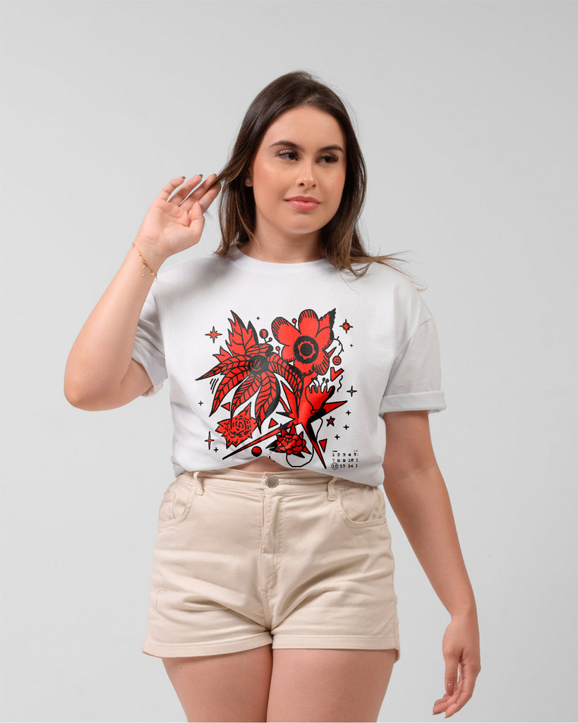 A gola canelada de 2 cm e a costura reforçada garantem durabilidade, sem perder o formato ou a cor. A estampa é de alta qualidade, com cores vivas e definição que duram.