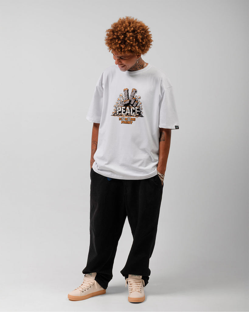 Com design oversized e corte moderno, esta camiseta oferece estilo e conforto. Feita com a malha Menegotti de fio 28.1 e 190g, ela é leve, suave e respirável, perfeita para o uso diário.