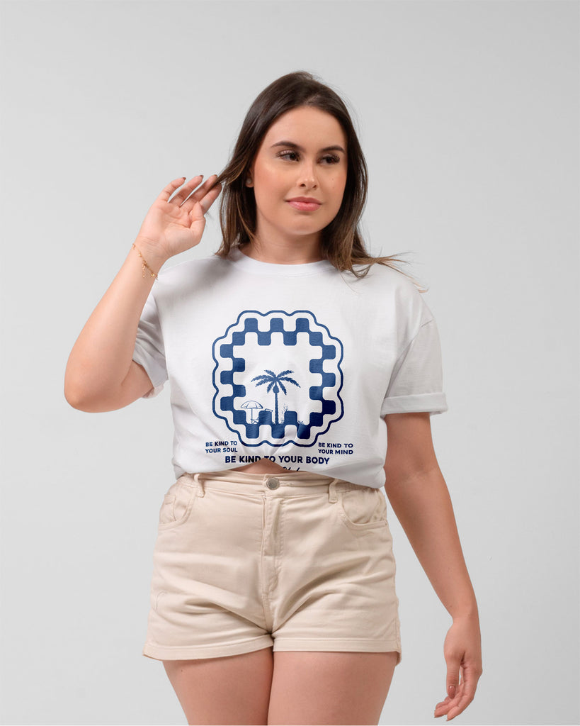 A gola canelada de 2 cm e a costura reforçada garantem durabilidade, sem perder o formato ou a cor. A estampa é de alta qualidade, com cores vivas e definição que duram.