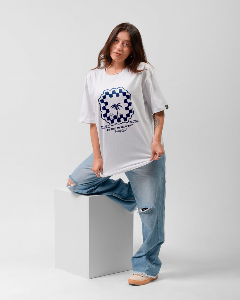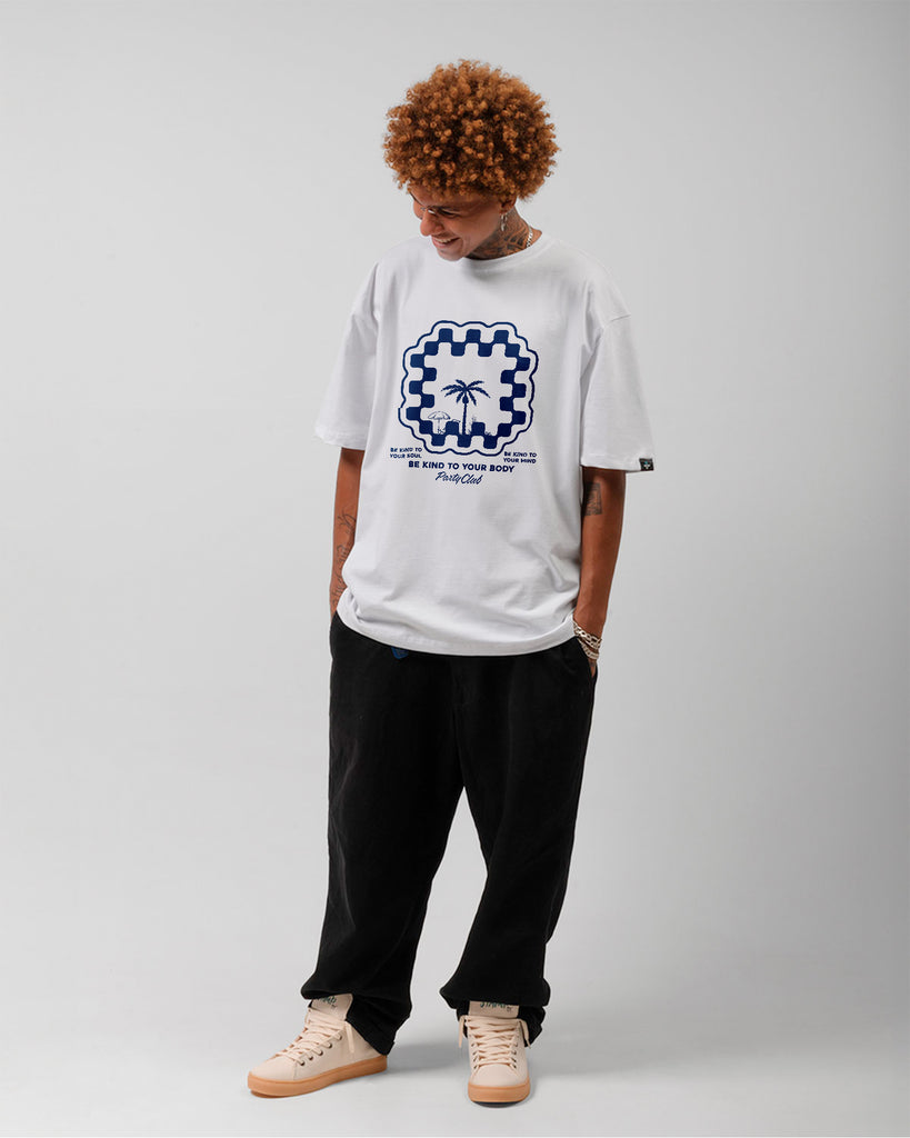 Com design oversized e corte moderno, esta camiseta oferece estilo e conforto. Feita com a malha Menegotti de fio 28.1 e 190g, ela é leve, suave e respirável, perfeita para o uso diário.