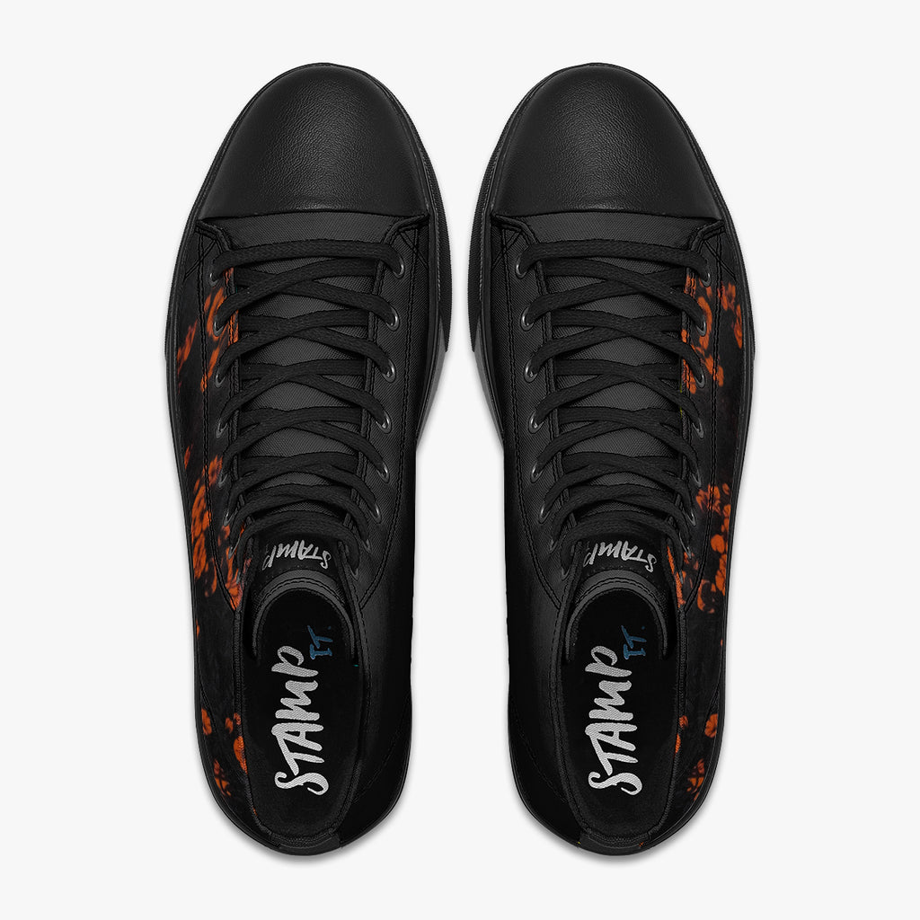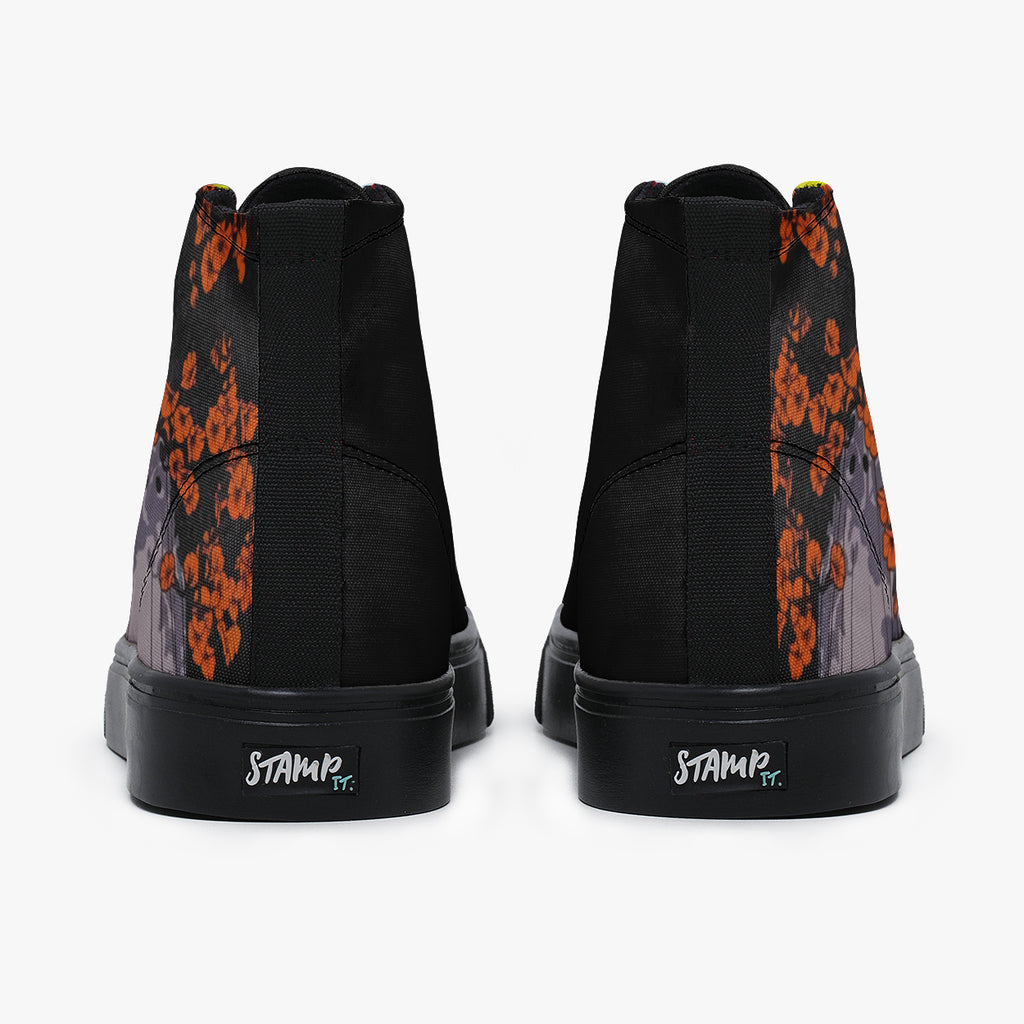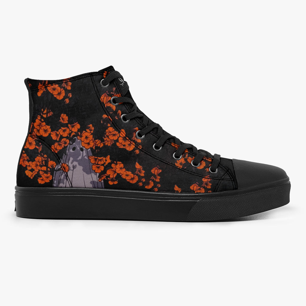 Tênis Cano Alto Preto Fantasma de Lençol Terror Halloween, confeccionado em lona, com cores e estampas exclusivas.
