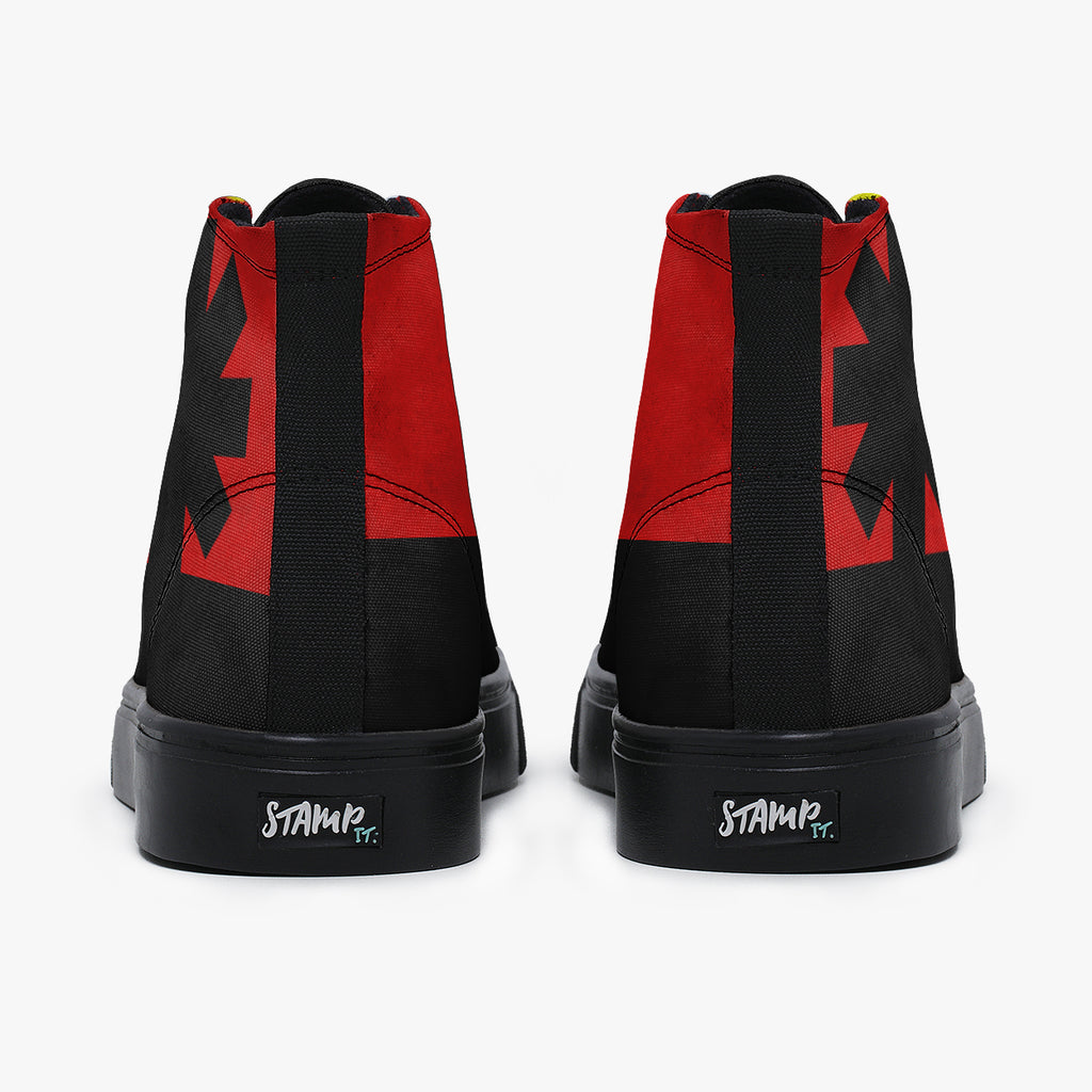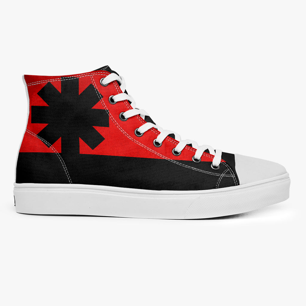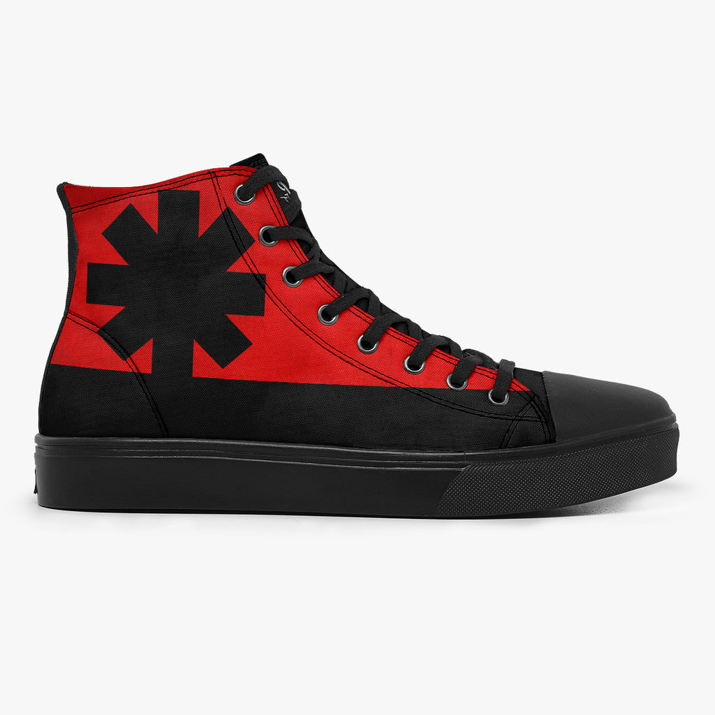 Tênis Cano Alto Vermelho e Preto Rock N Roll Red Hot Chili Pepper RHCP Signal Bandas de Rock