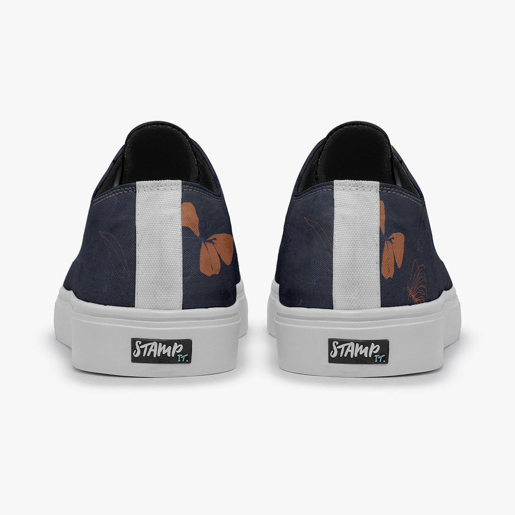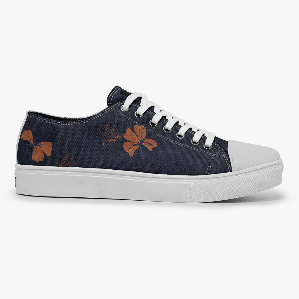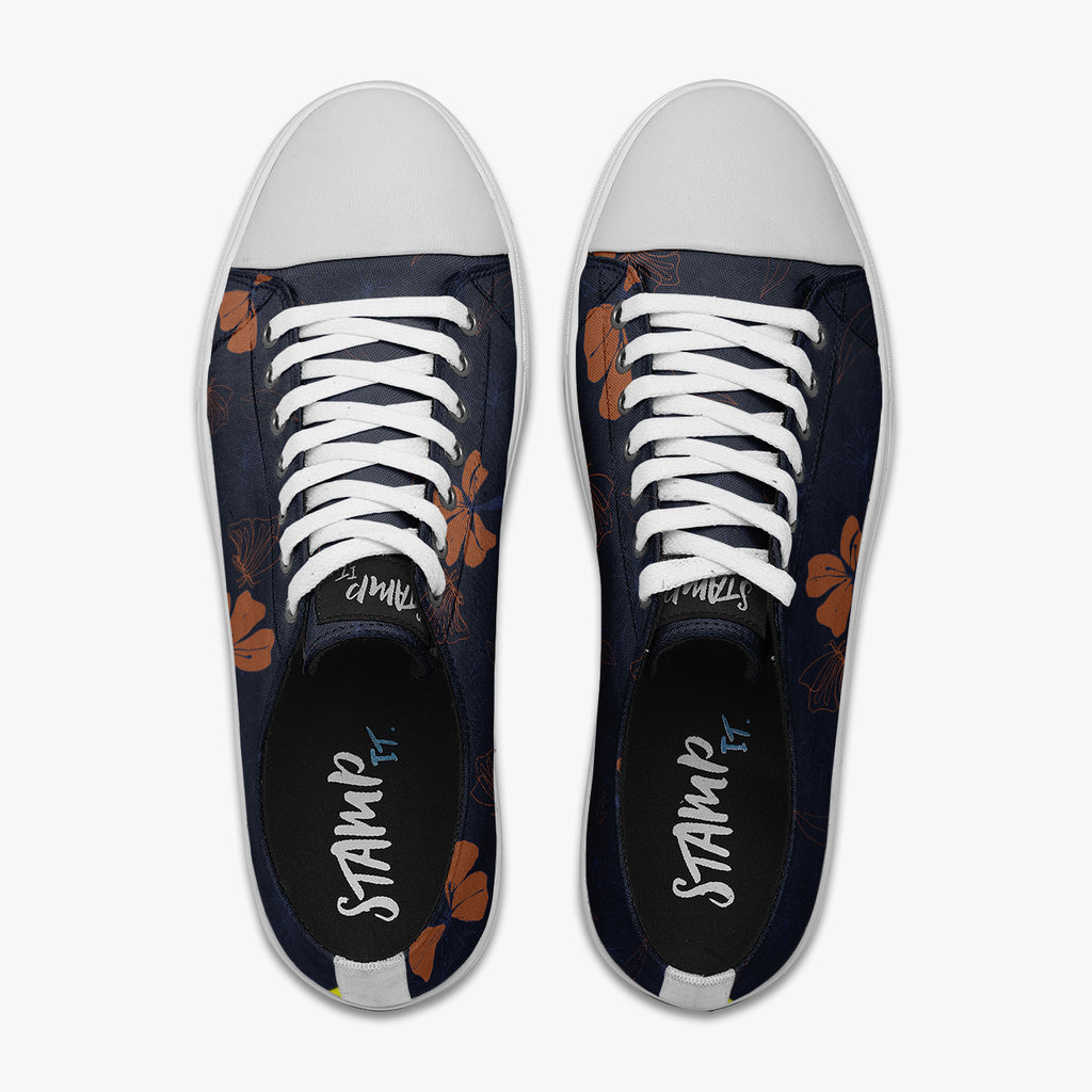 Tênis Cano Baixo Azul Cor De Jeans Folhas Marrom Flores e Folhas