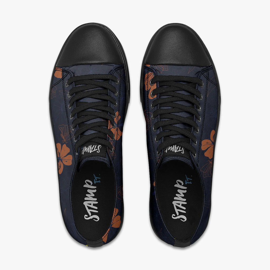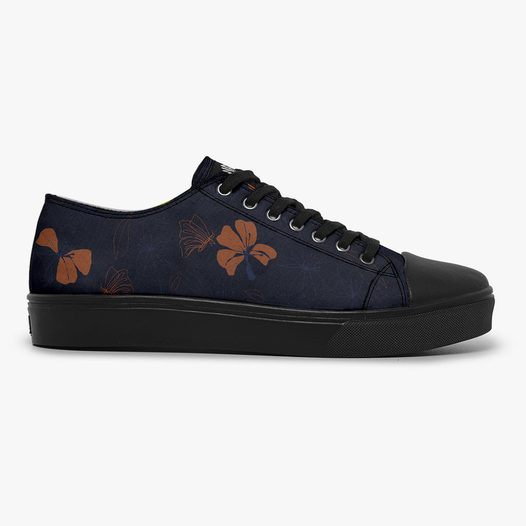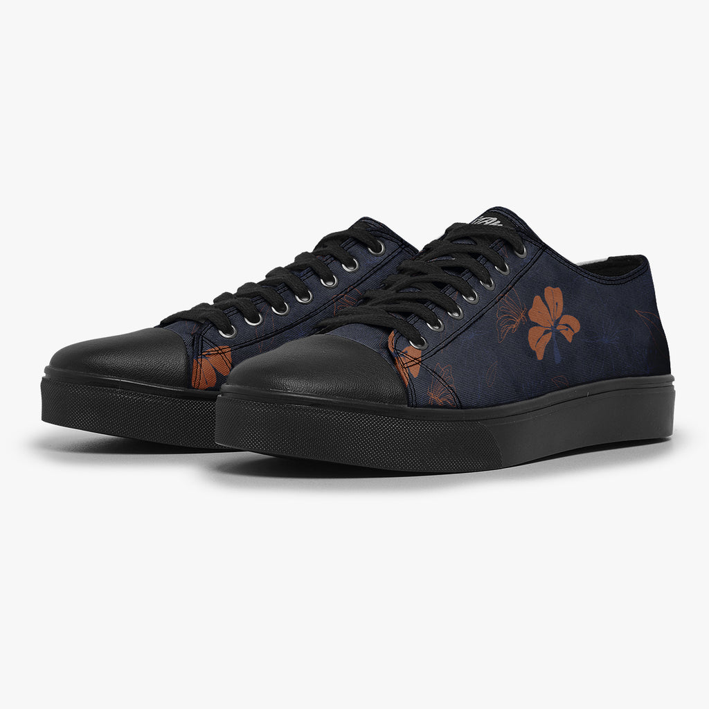 Tênis Cano Baixo Azul Cor De Jeans Folhas Marrom Flores e Folhas