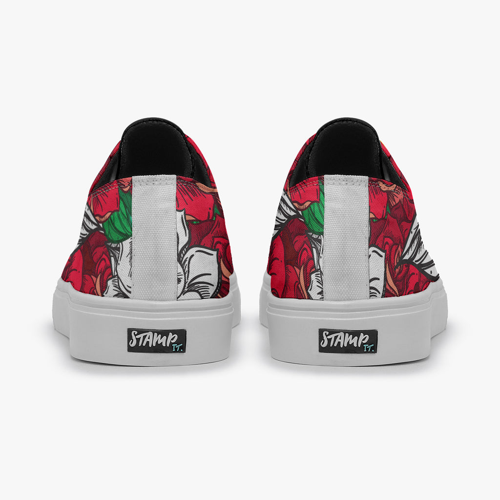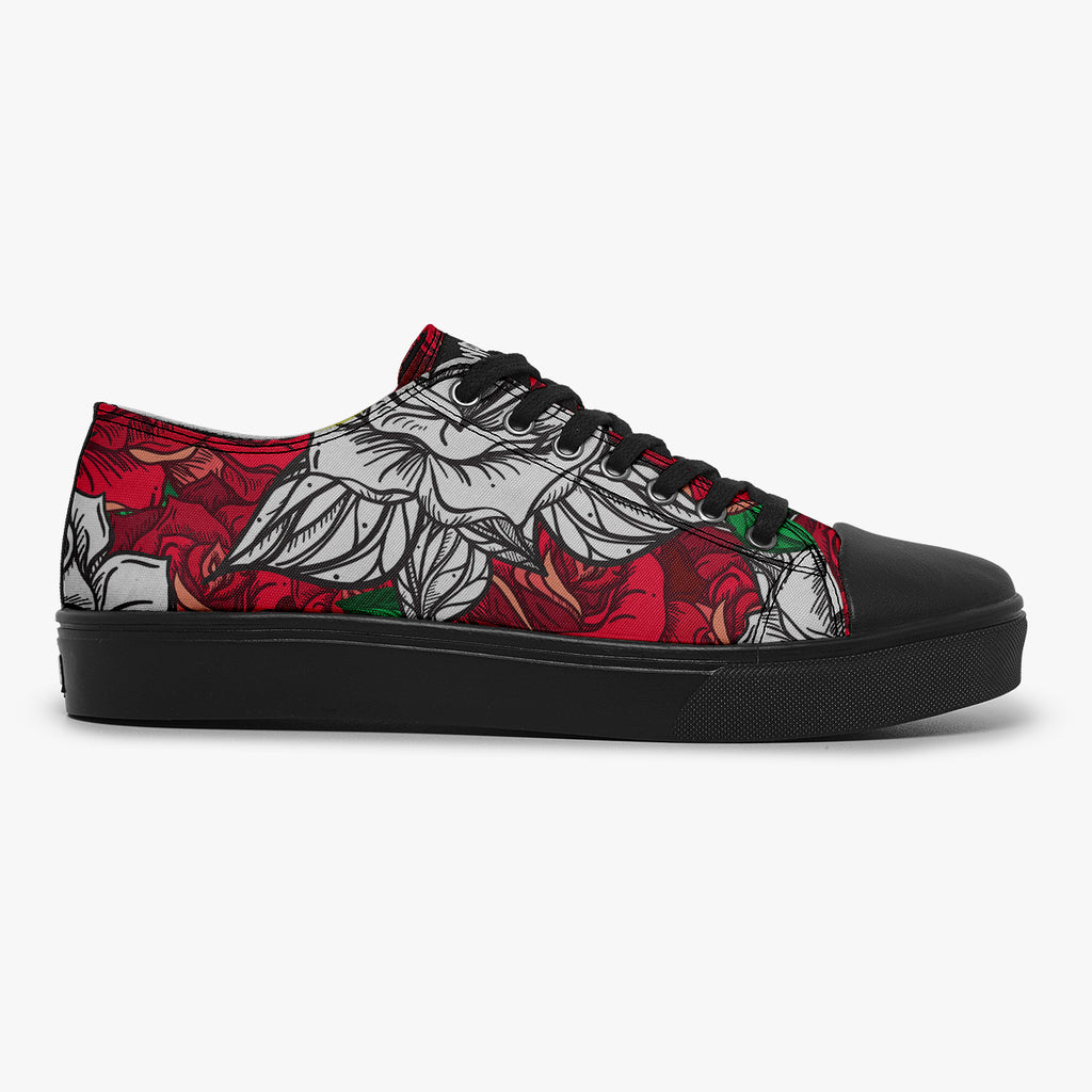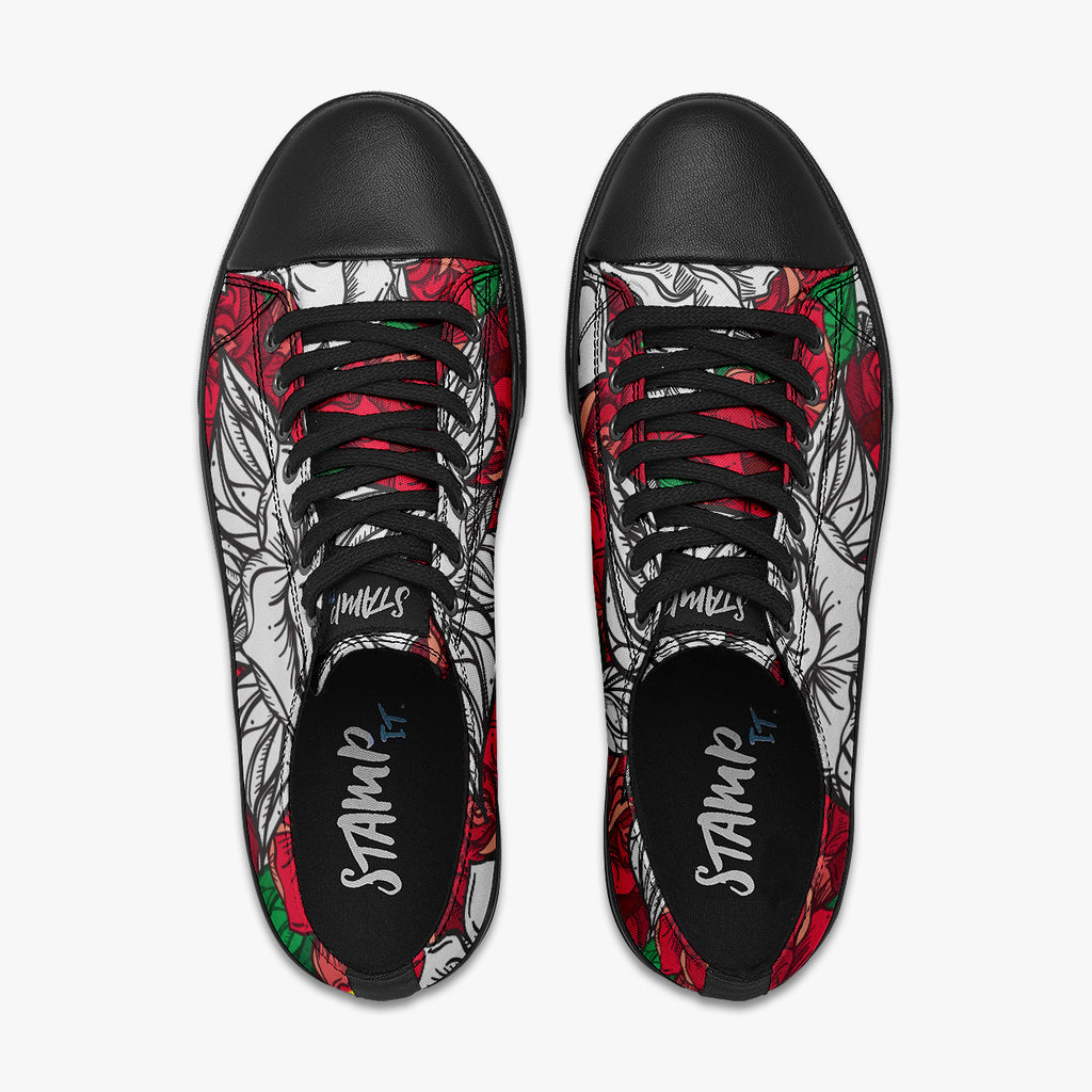Tênis Cano Baixo Branco Rosas Coloridas E Preto E Branco Flores E Folhas