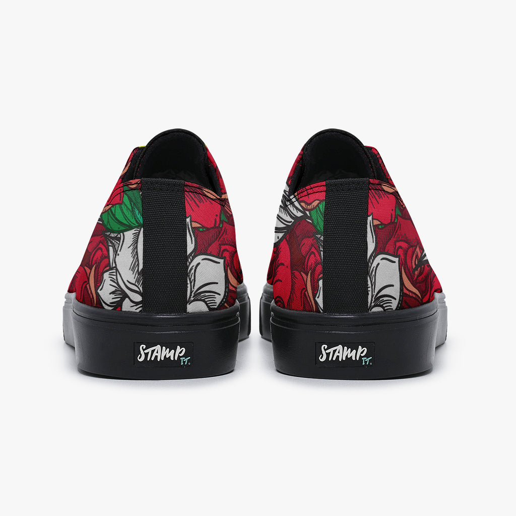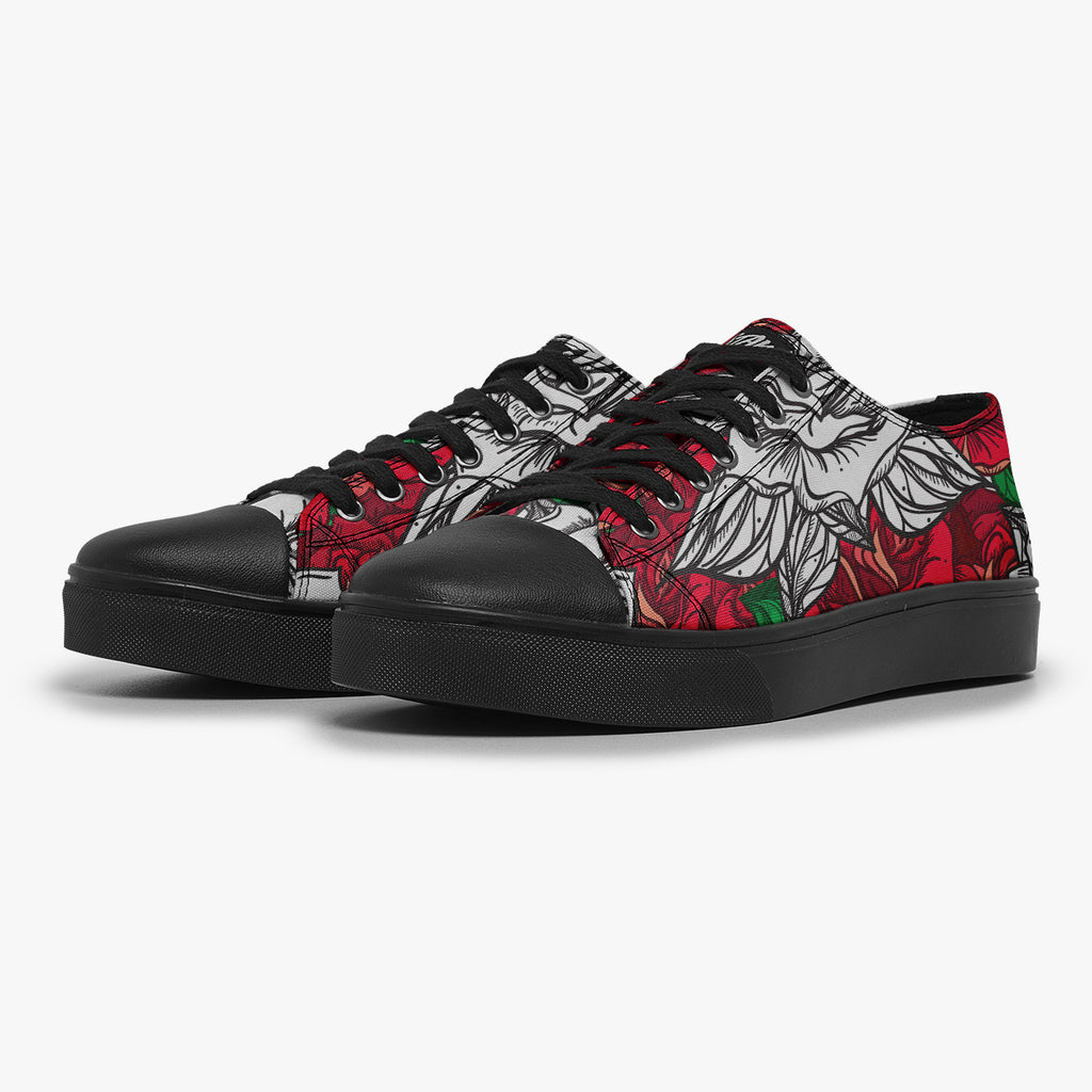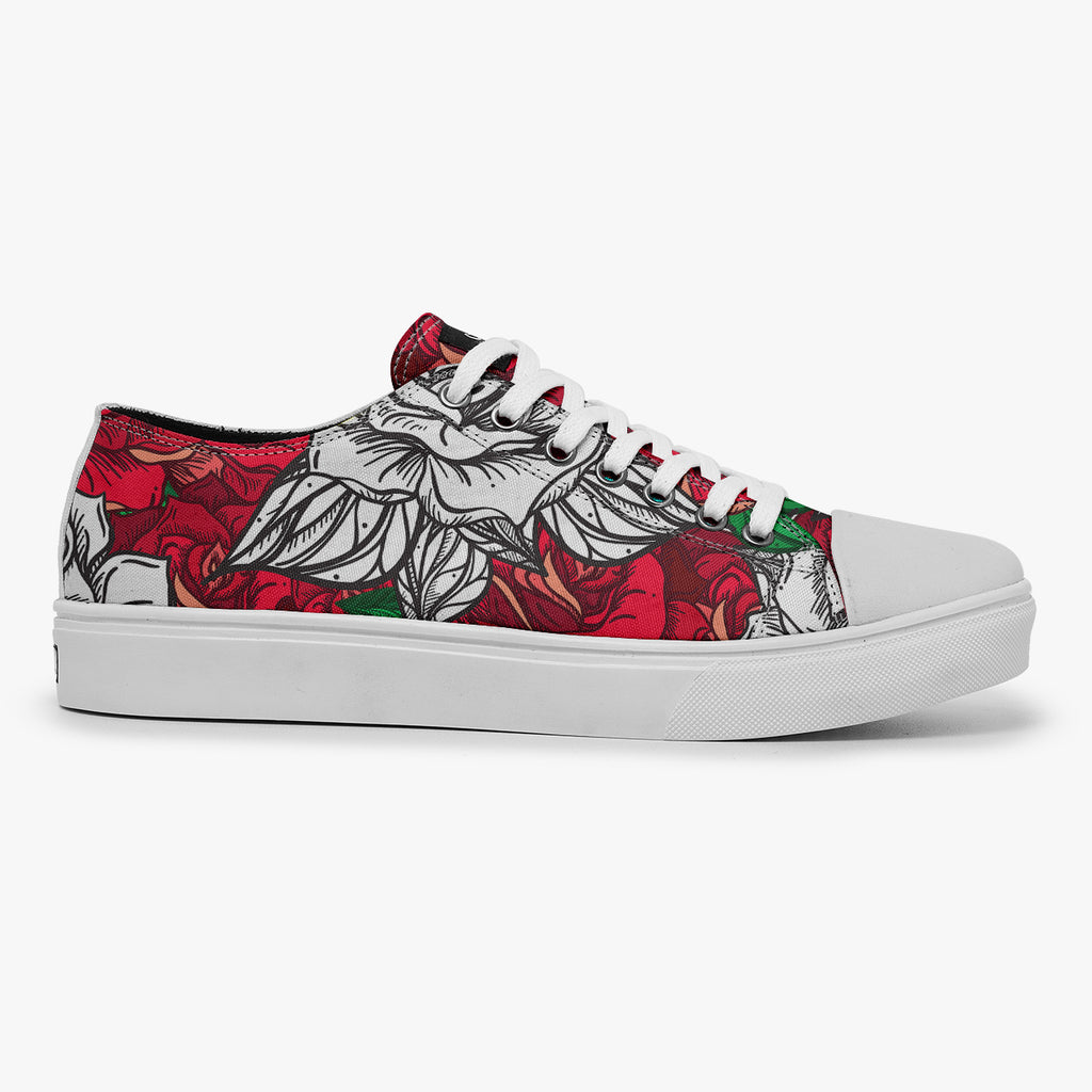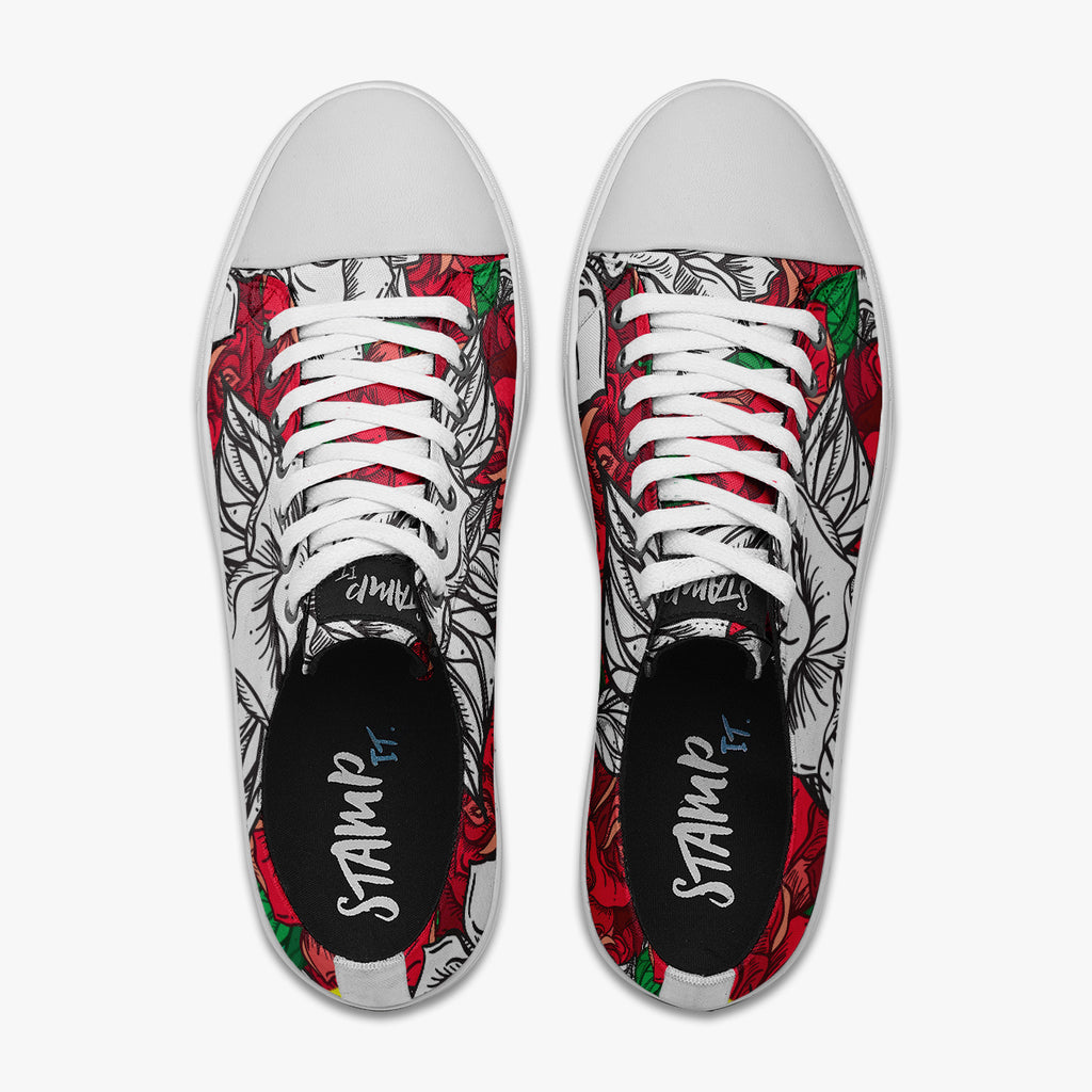 Tênis Cano Baixo Branco Rosas Coloridas E Preto E Branco Flores E Folhas