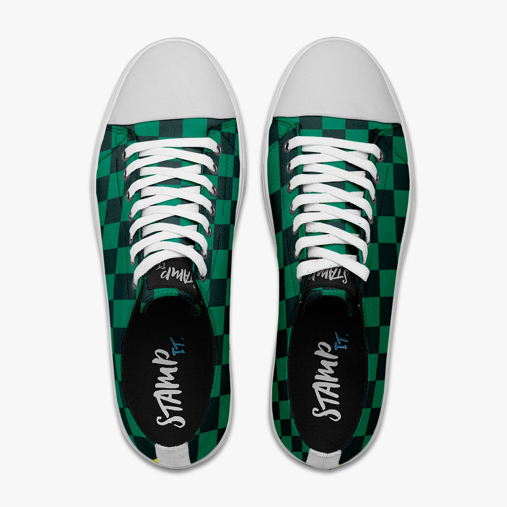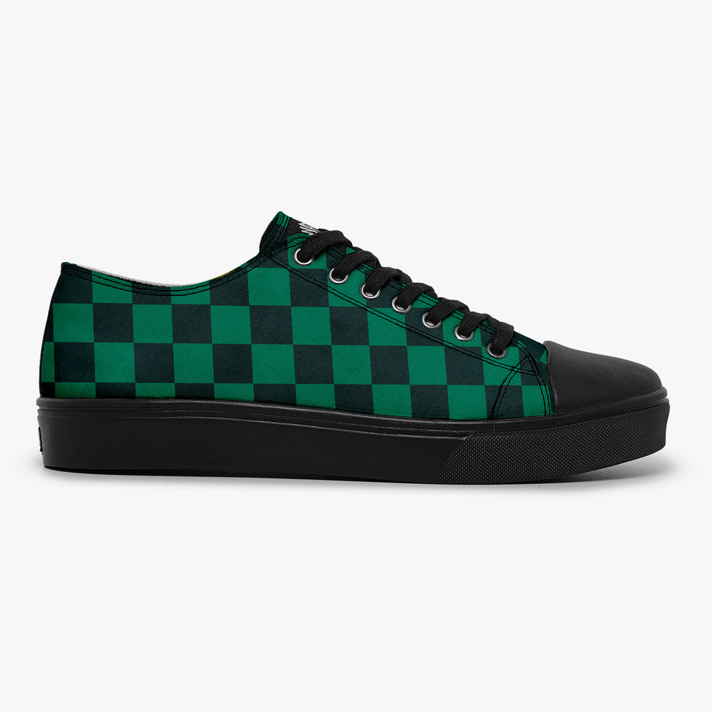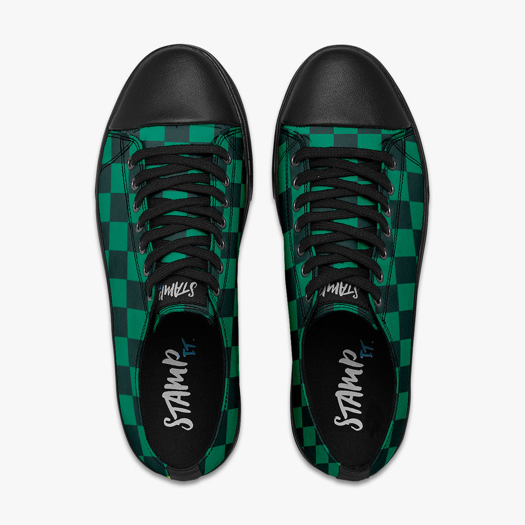Tênis Cano Baixo Preto e Verde Quadriculado Xadrez Abstrato