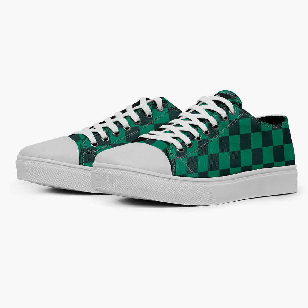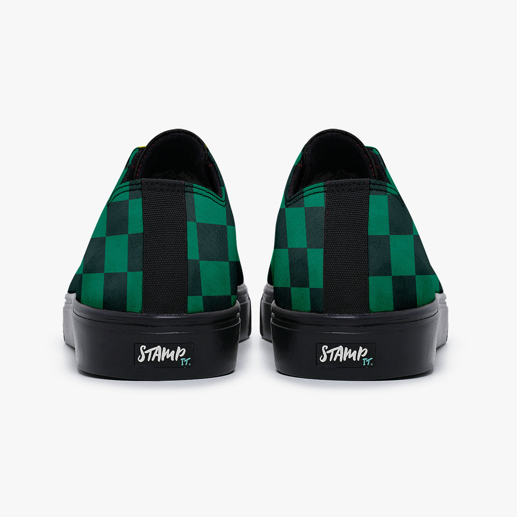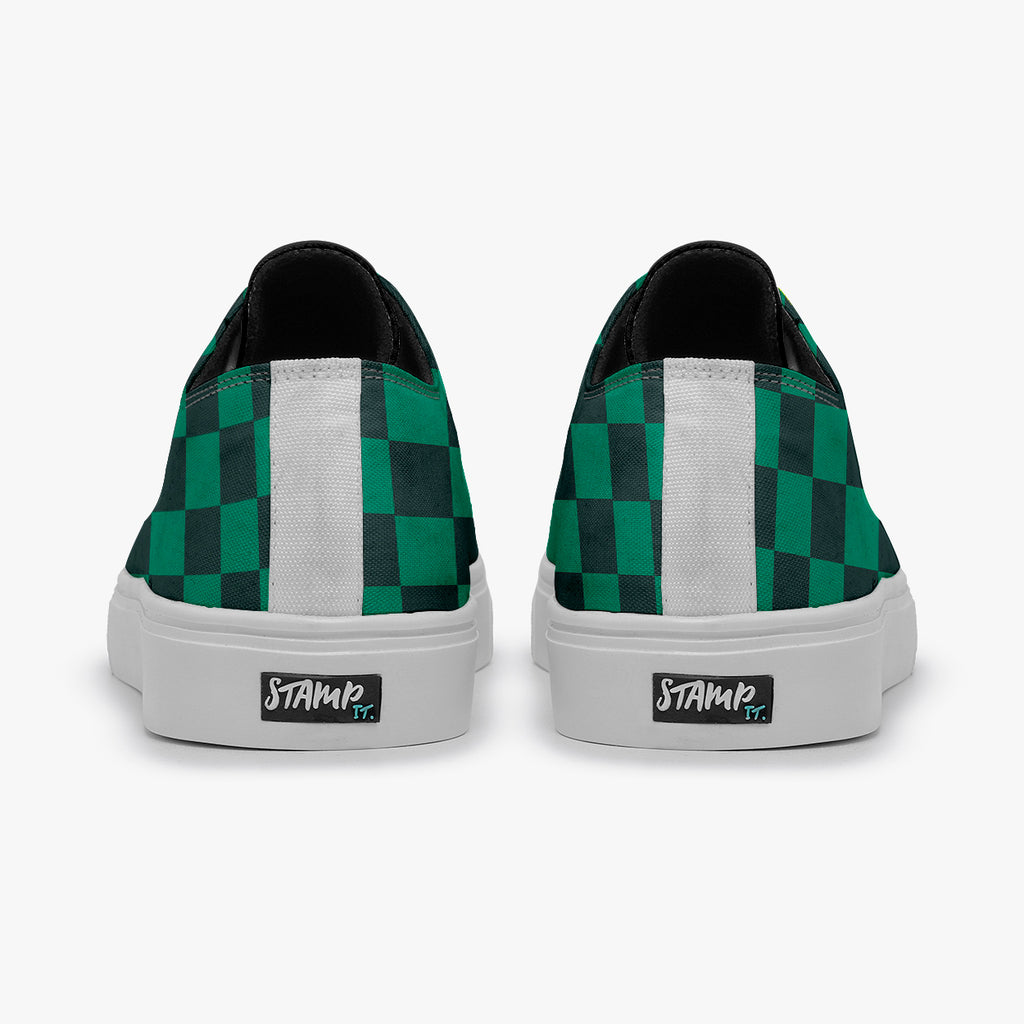 Tênis Cano Baixo Preto e Verde Quadriculado Xadrez Abstrato