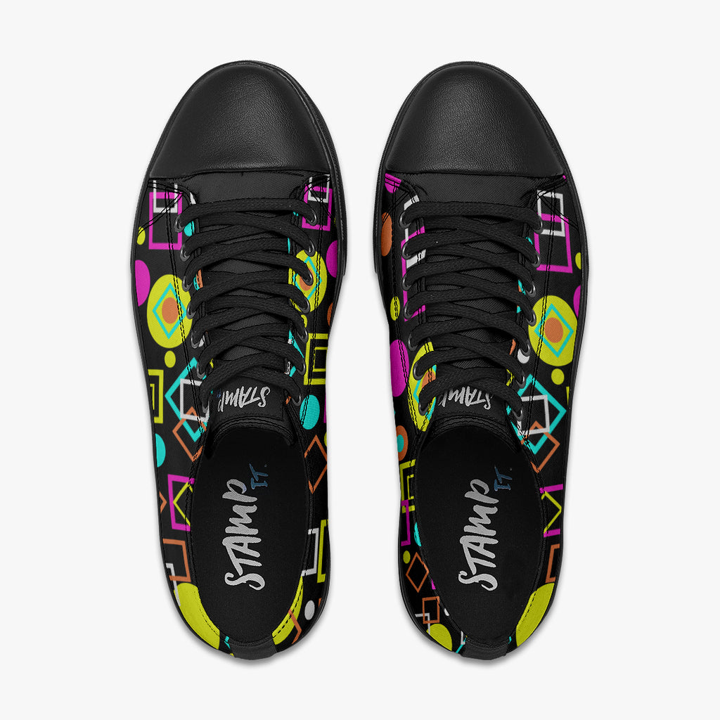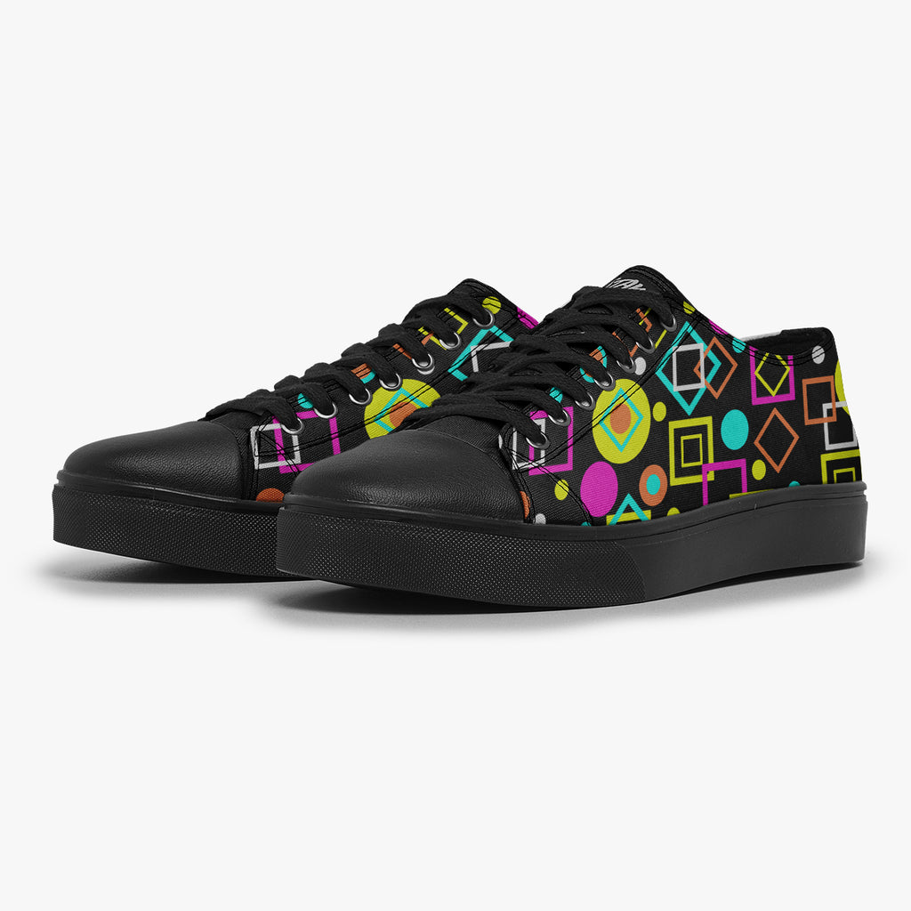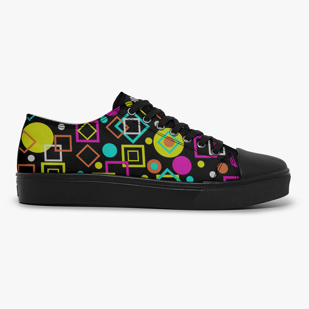 Tênis Cano Baixo Preto Geométrico de Formas Fundidas Circulo Abstrato