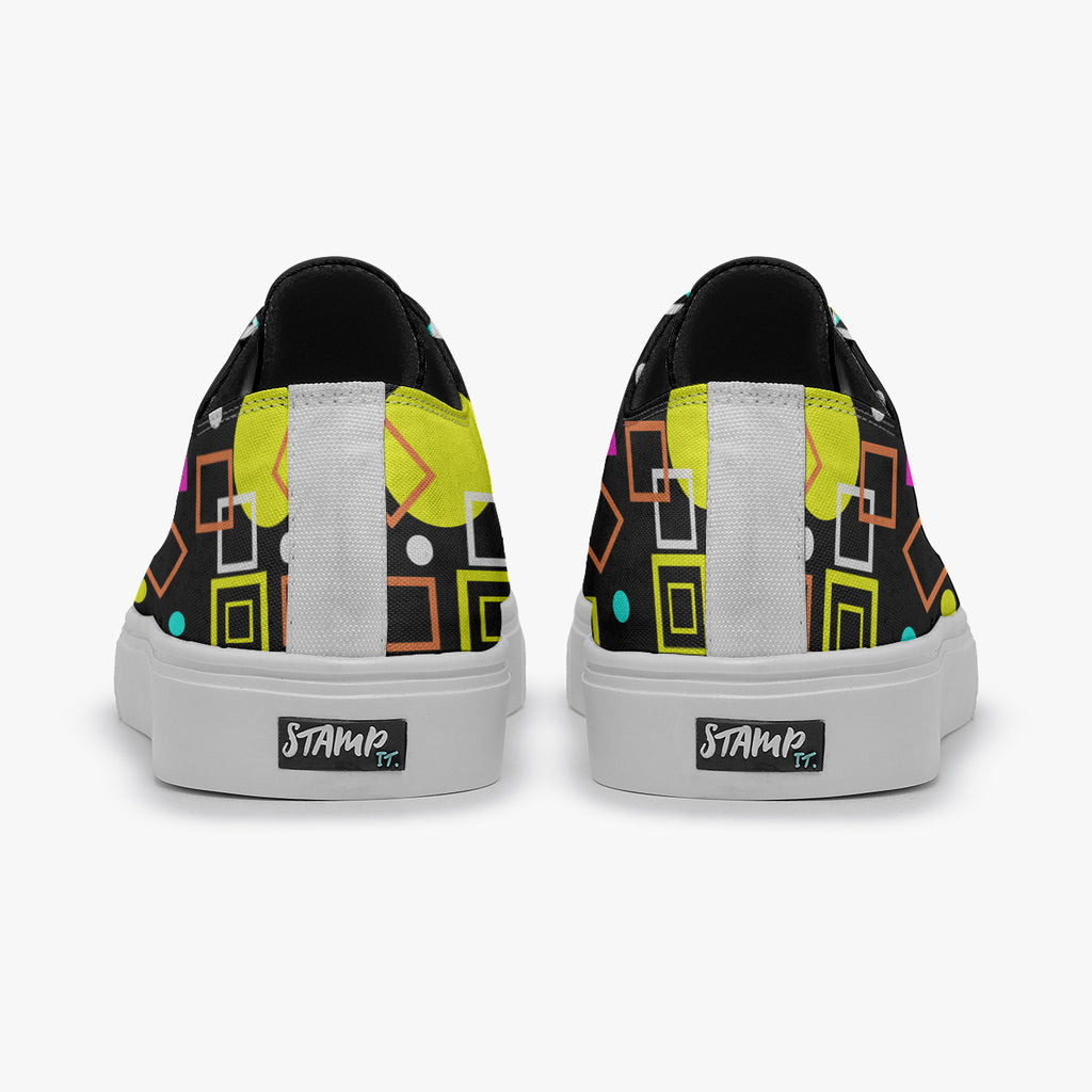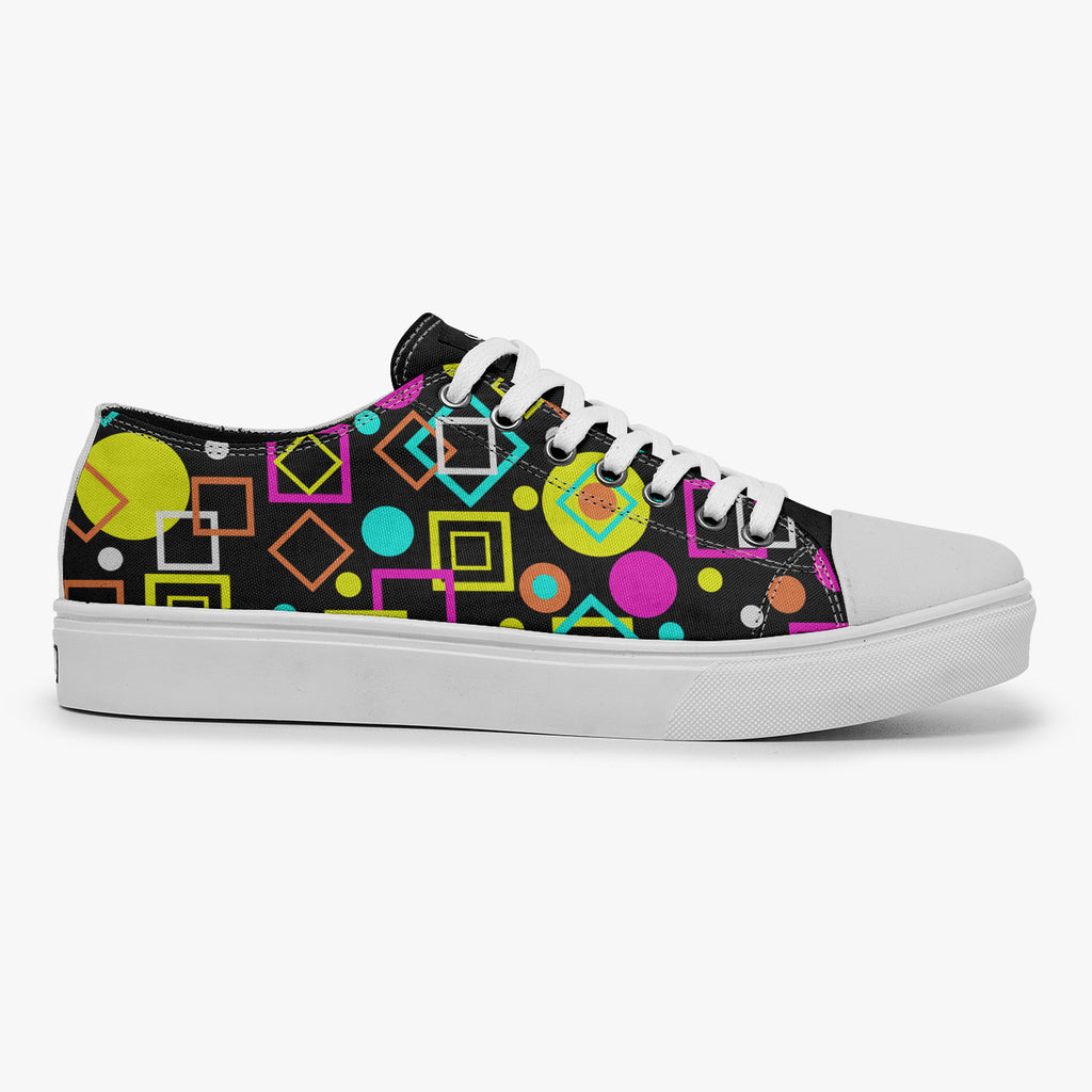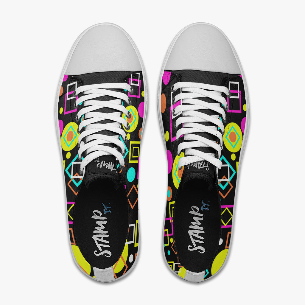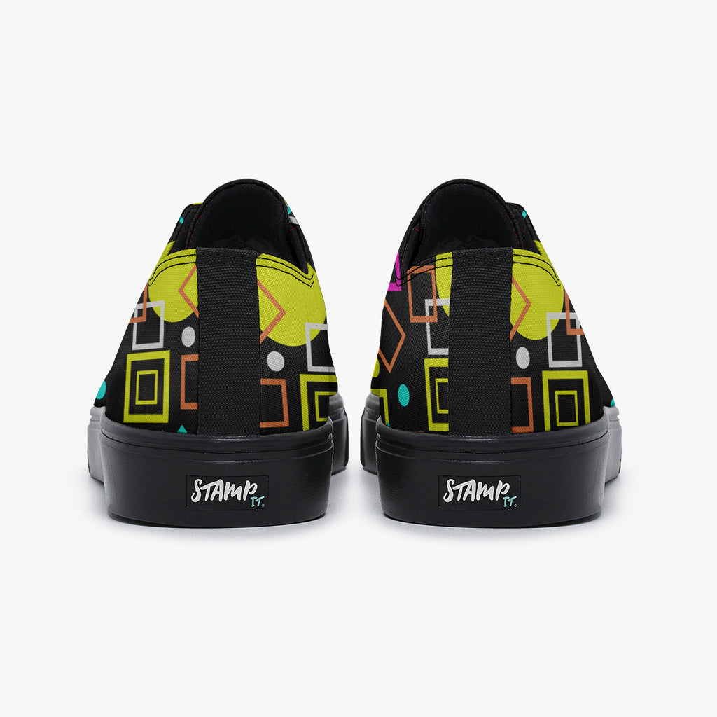 Tênis Cano Baixo Preto Geométrico de Formas Fundidas Circulo Abstrato