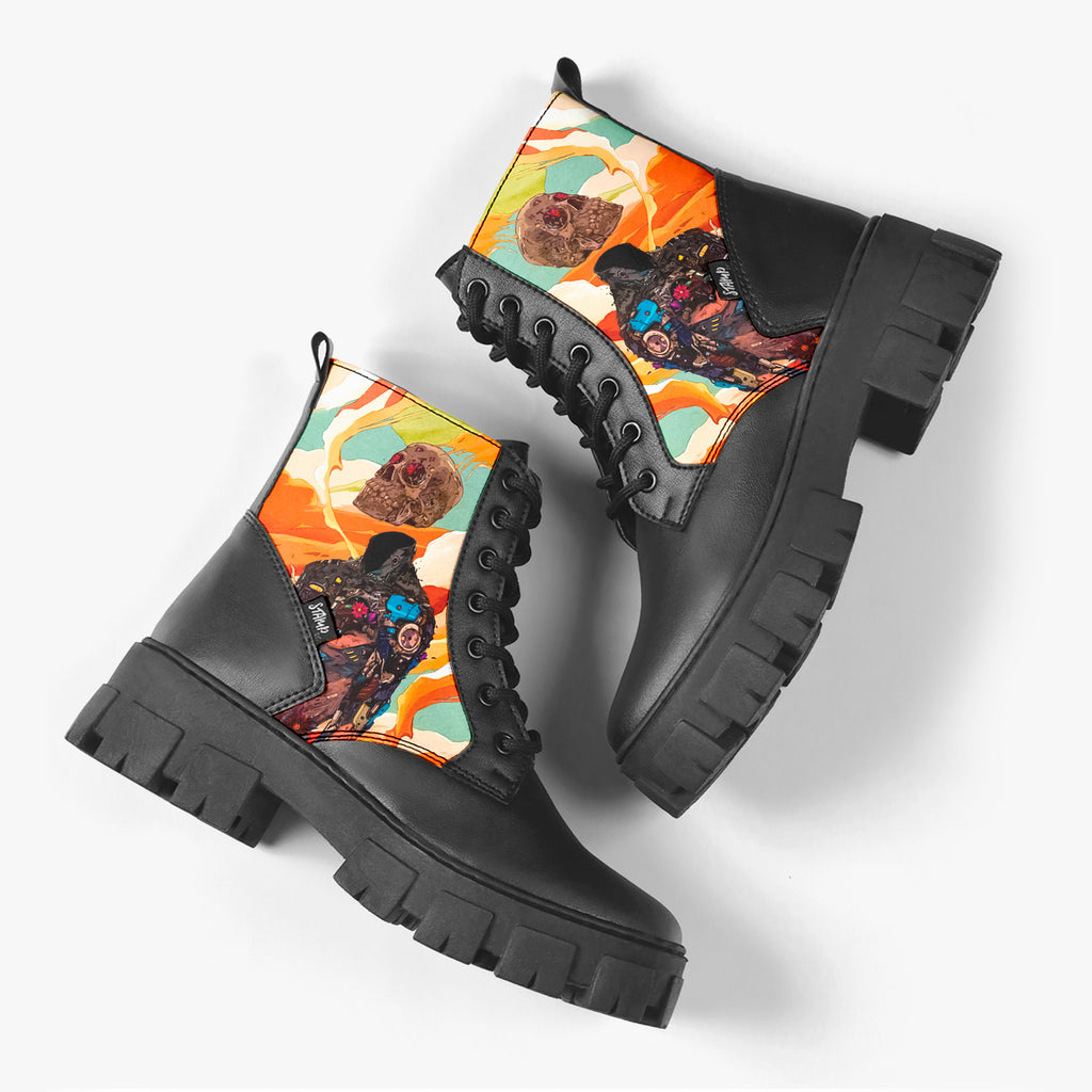 Bota Coturno Tratorada Cano Médio Caveira Good Mood Skeleton Colorido Caveiras