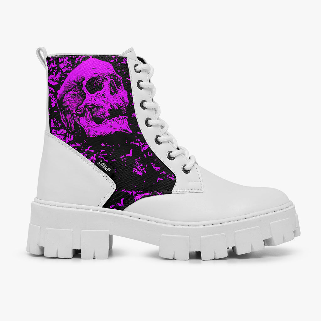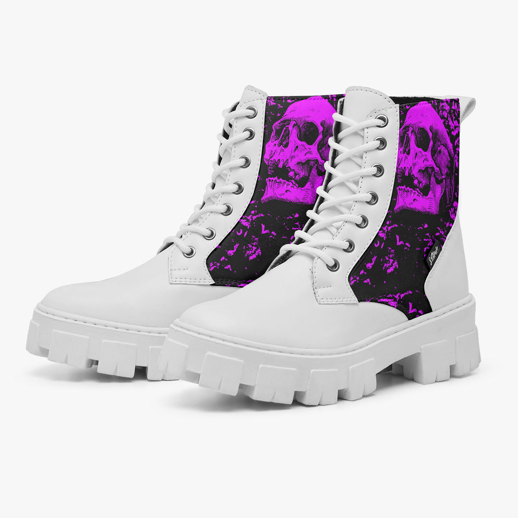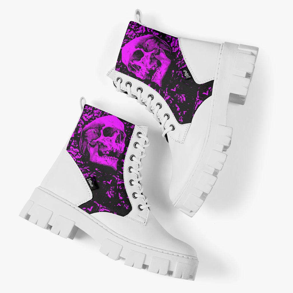 Bota Coturno Tratorada Cano Médio Caveira Pink Neon Lights Preto e Rosa Caveiras