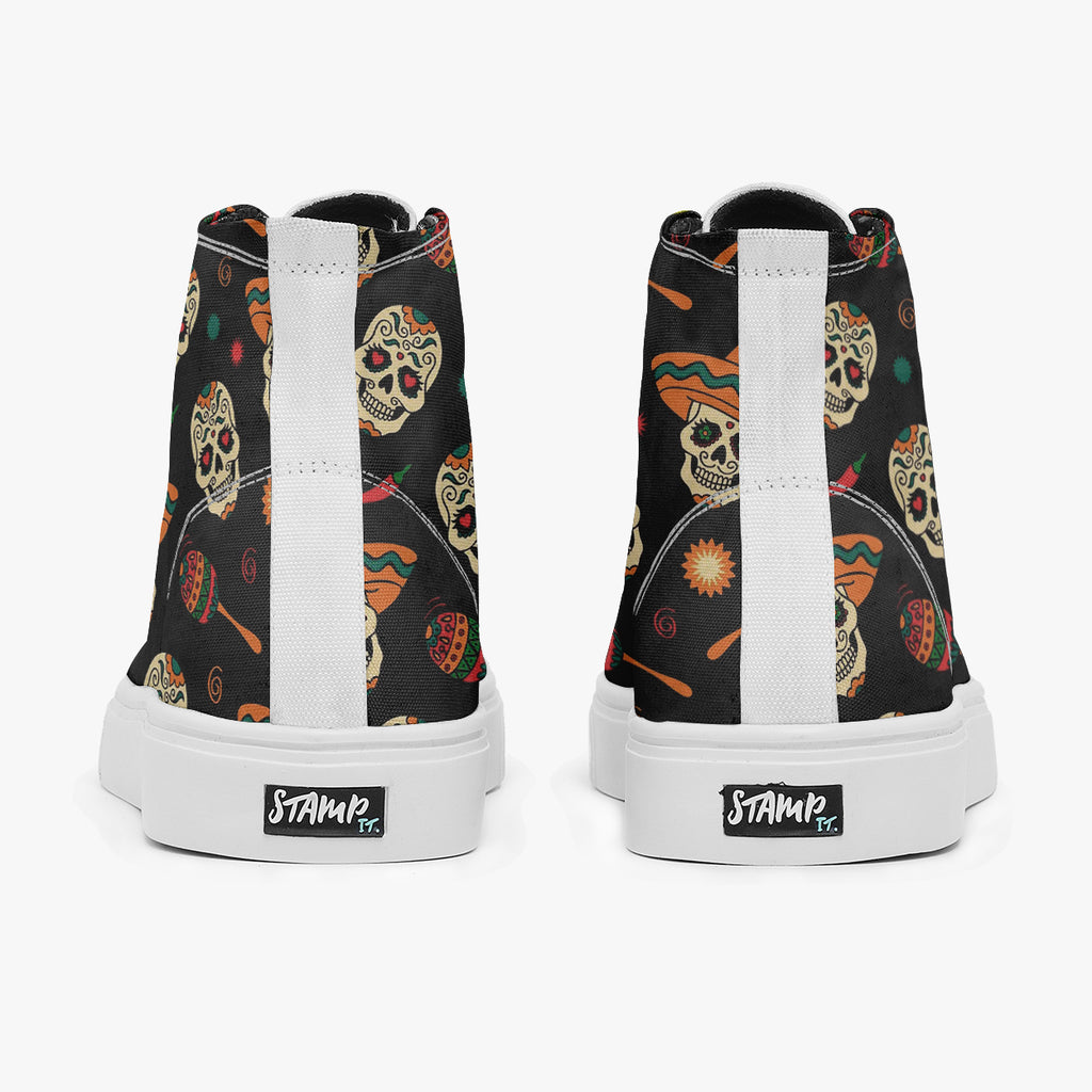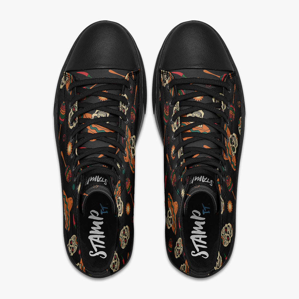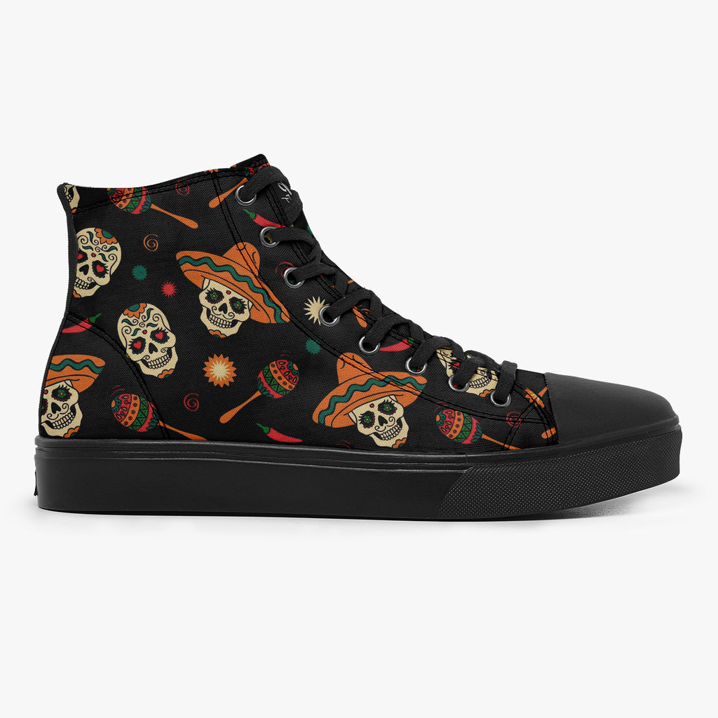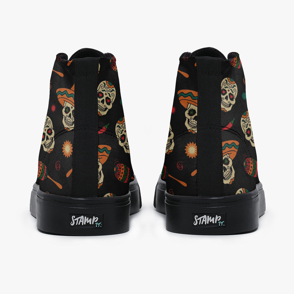Tênis Cano Alto Preto Preto Caveiras Mexicana Maracas Caveiras