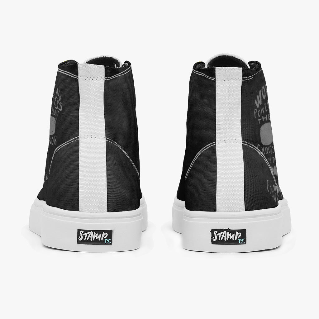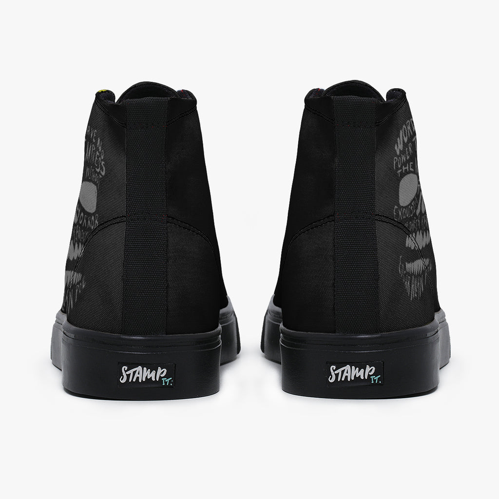 Tênis Cano Alto Preto Words Have No Power Allan Poe Cultura, confeccionado em lona, com cores e estampas exclusivas.
