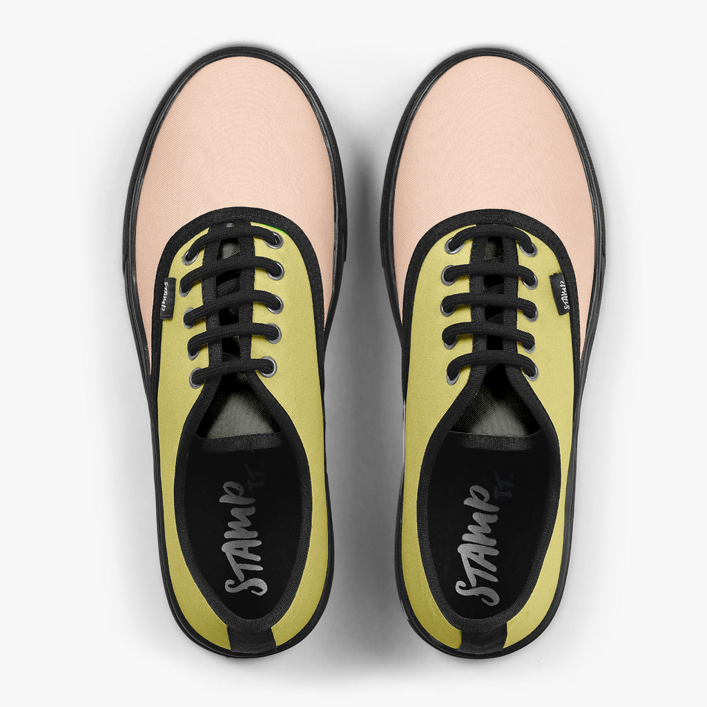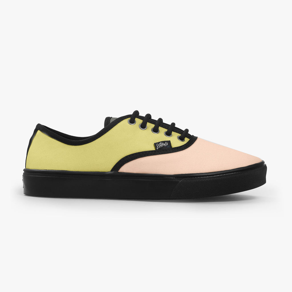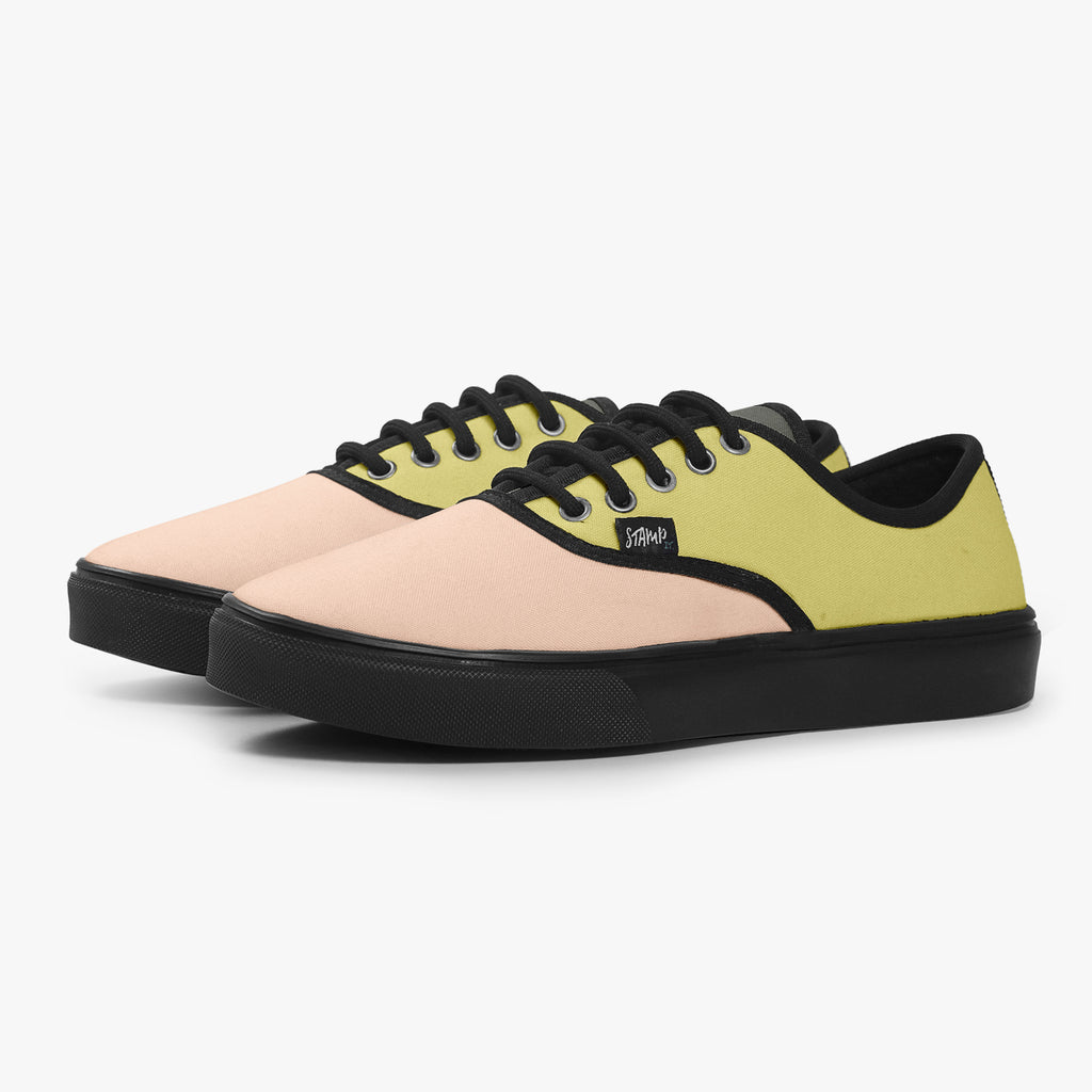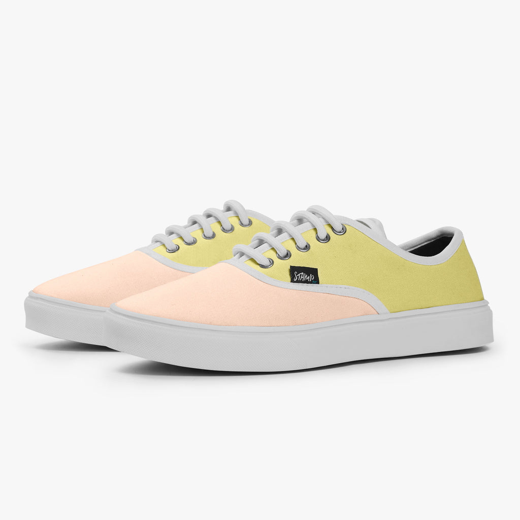 Tênis Casual Unissex Bege Amarelo e Cinza Colors, confeccionado em lona, com cores e estampas exclusivas.