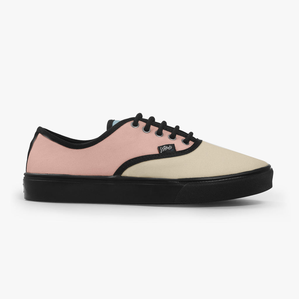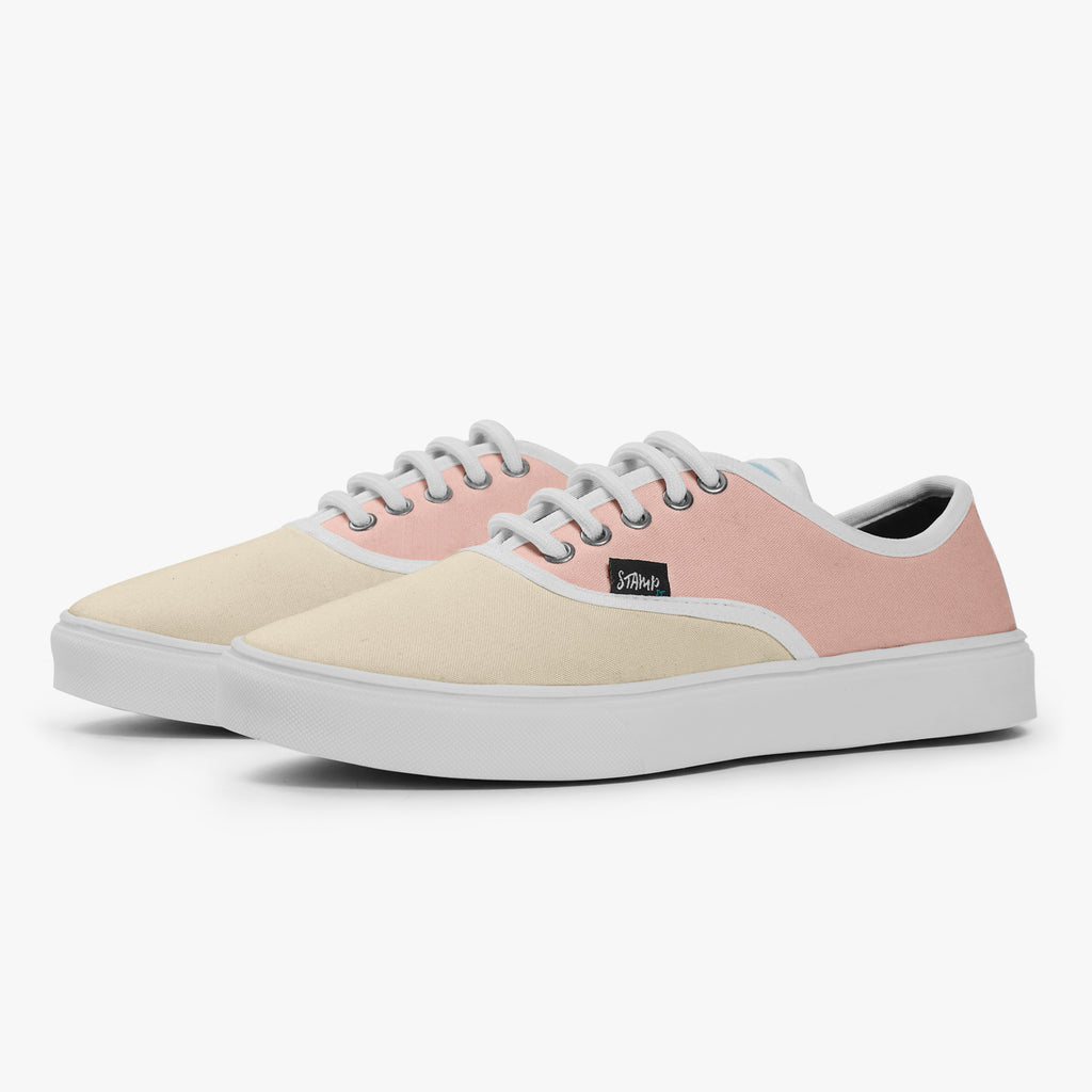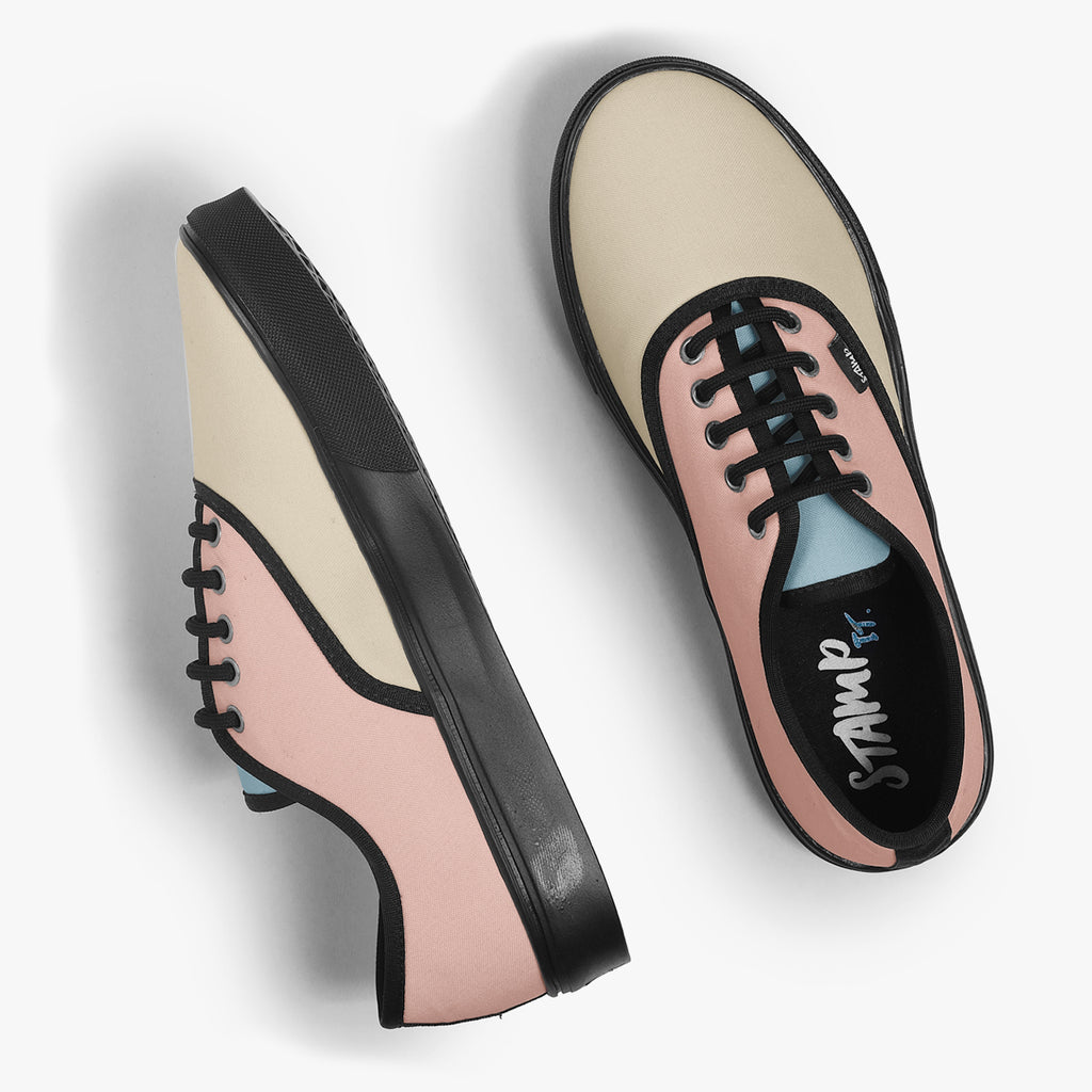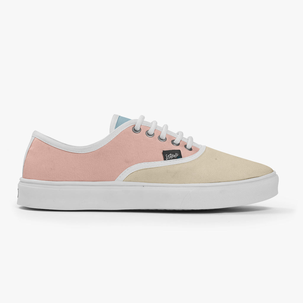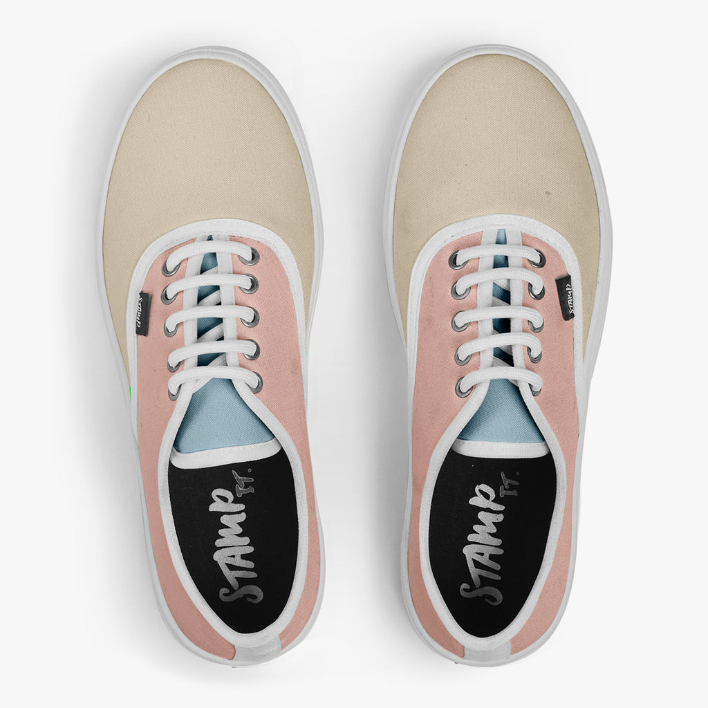 Tênis Casual Unissex Marrom Rose e azul Colors, confeccionado em lona, com cores e estampas exclusivas.