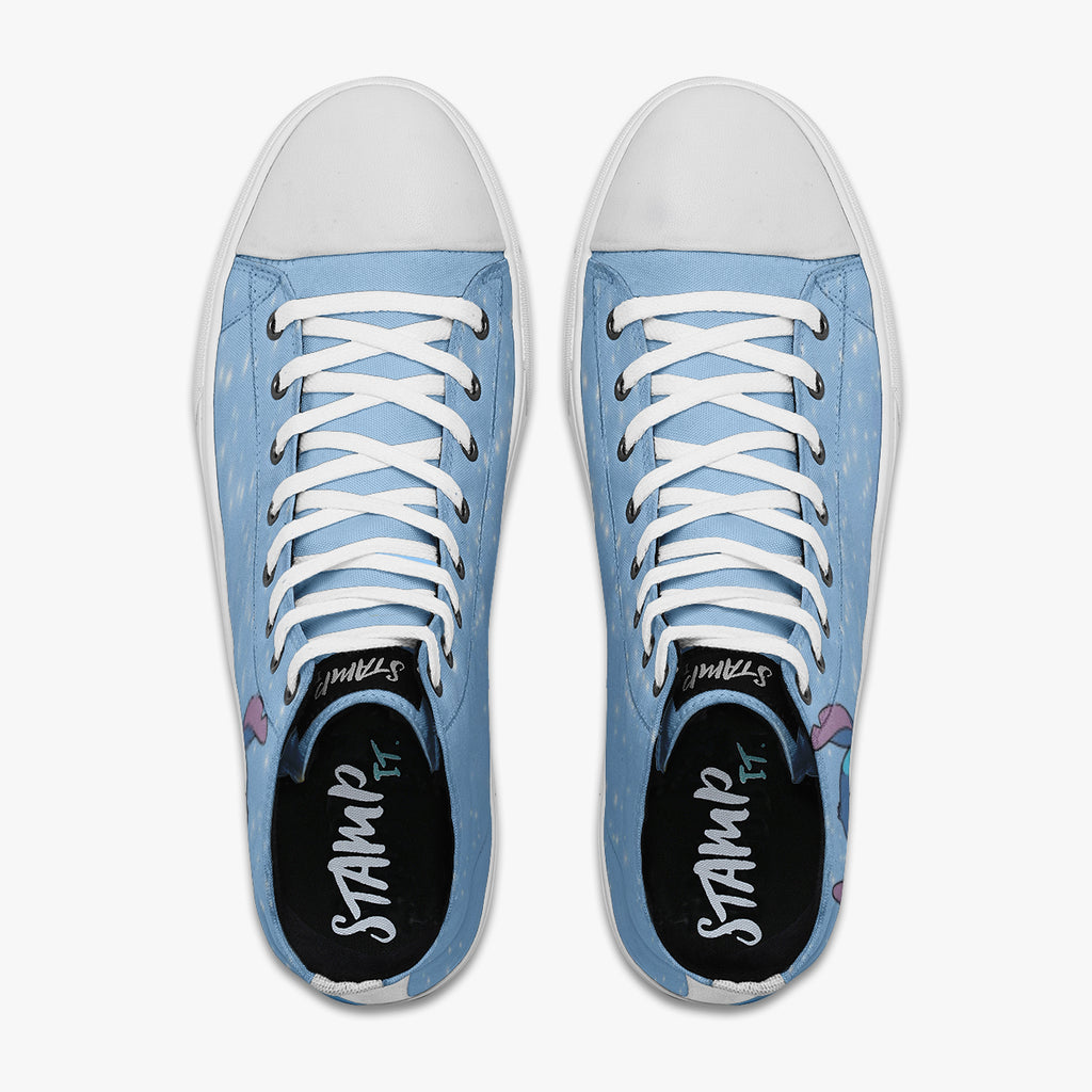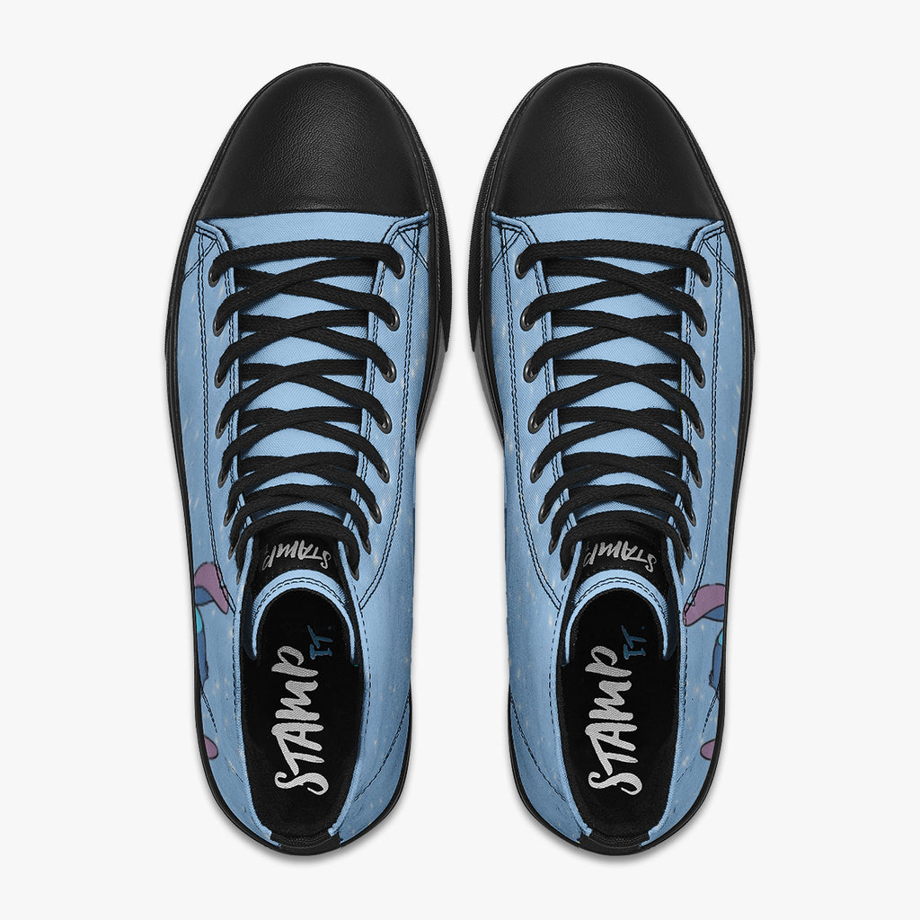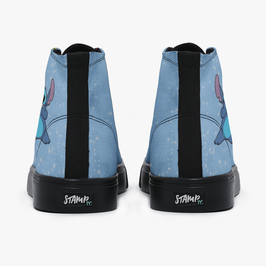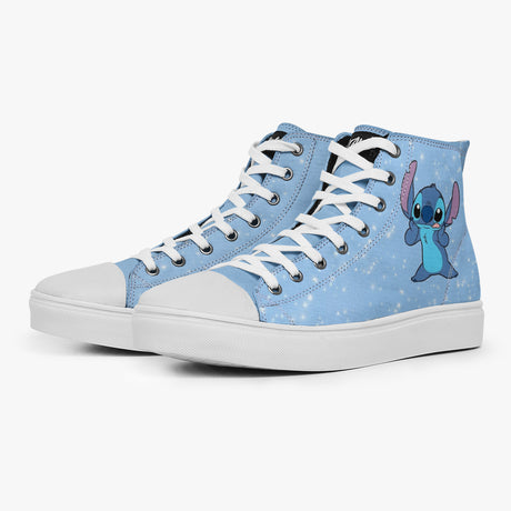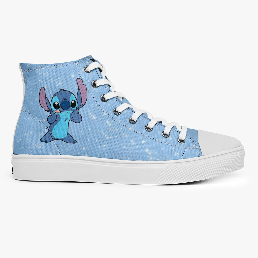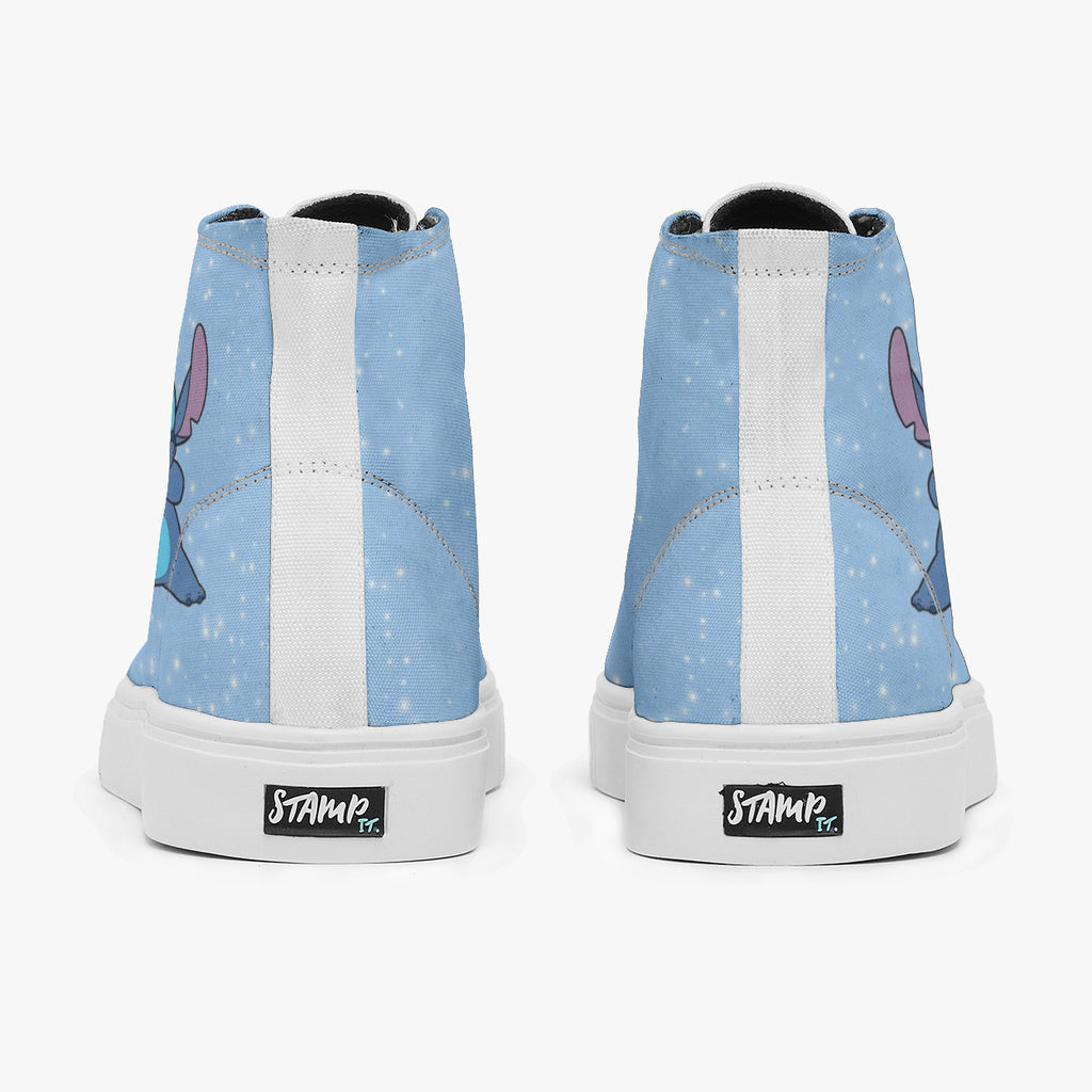 Tênis Cano Alto Azul Lilo E Stitch Nas Estrelas Séries E Filmes, confeccionado em lona, com cores e estampas exclusivas.