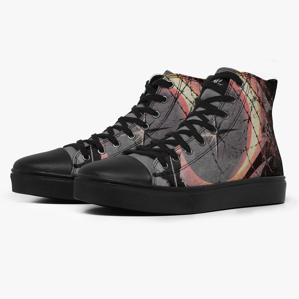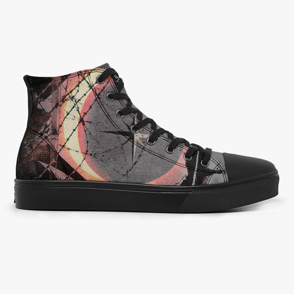 Tênis Cano Alto Circulo De Fogo, confeccionado em lona, com cores e estampas exclusivas.