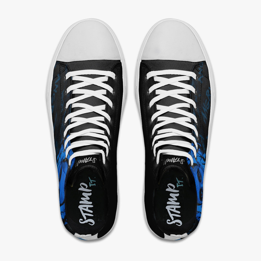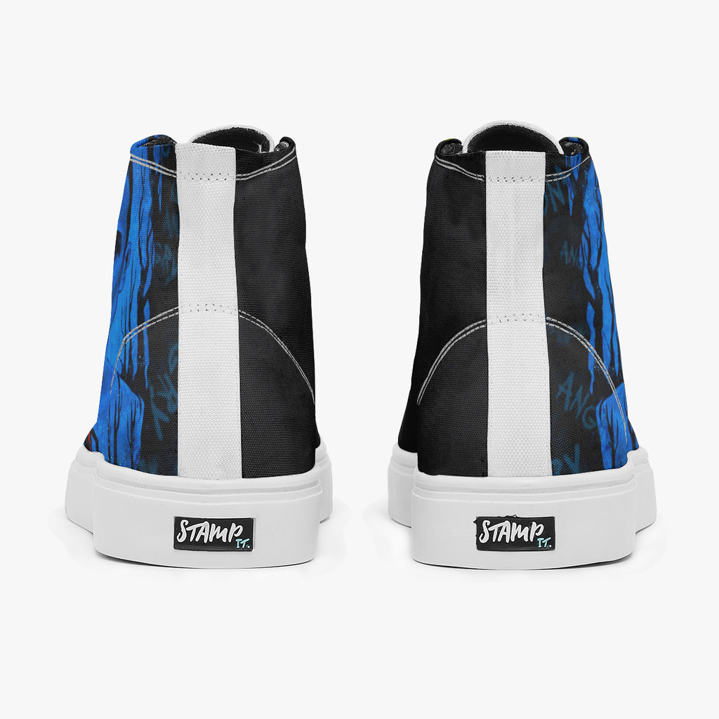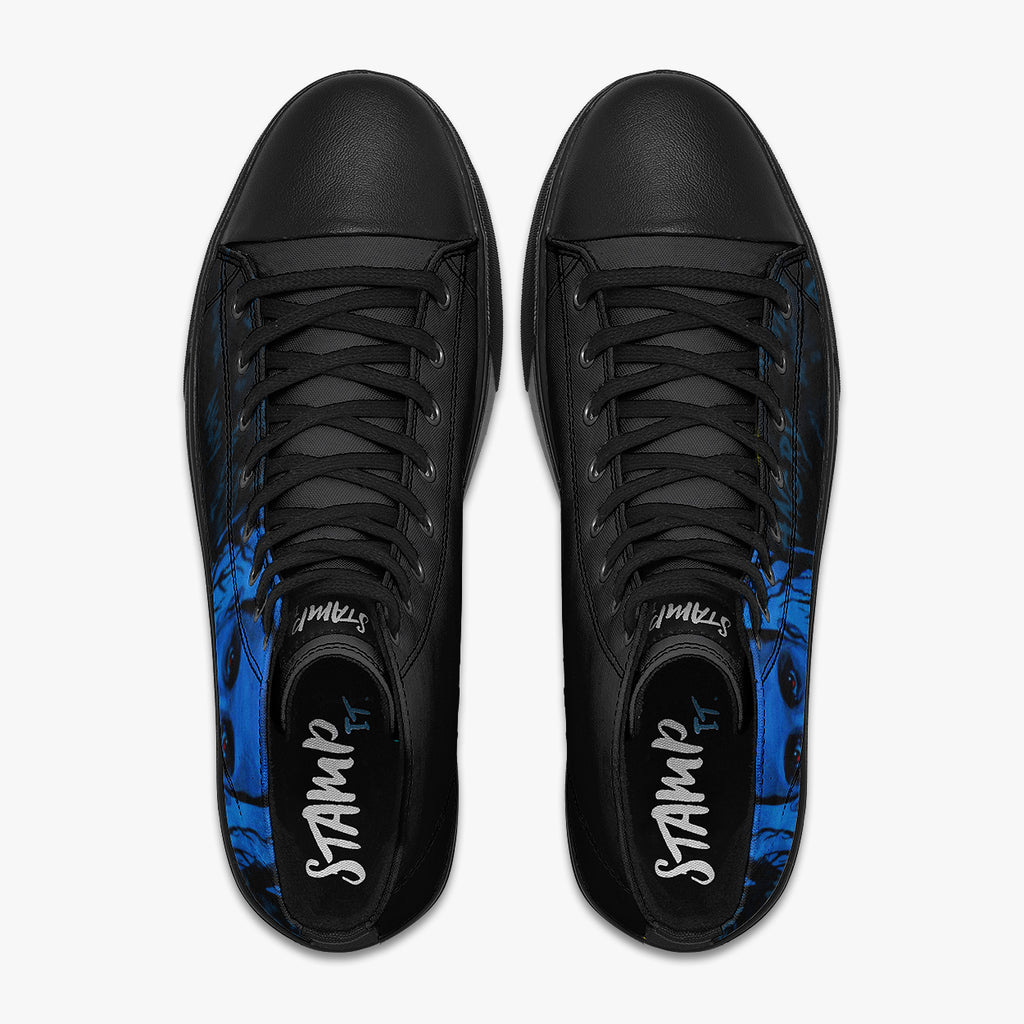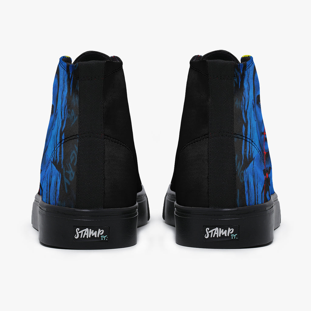Tênis Cano Alto Preto Stranger Things Eleven Bleeding Séries e Filmes, confeccionado em lona, com cores e estampas exclusivas.